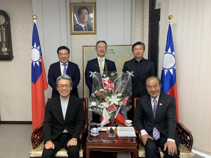 福岡銀行五島久頭取、工藤章執行役員とグローバルソリューション部三溝尋紀部長ご一行は6月5日当処をご来訪。台湾との経済交流について意見交換。