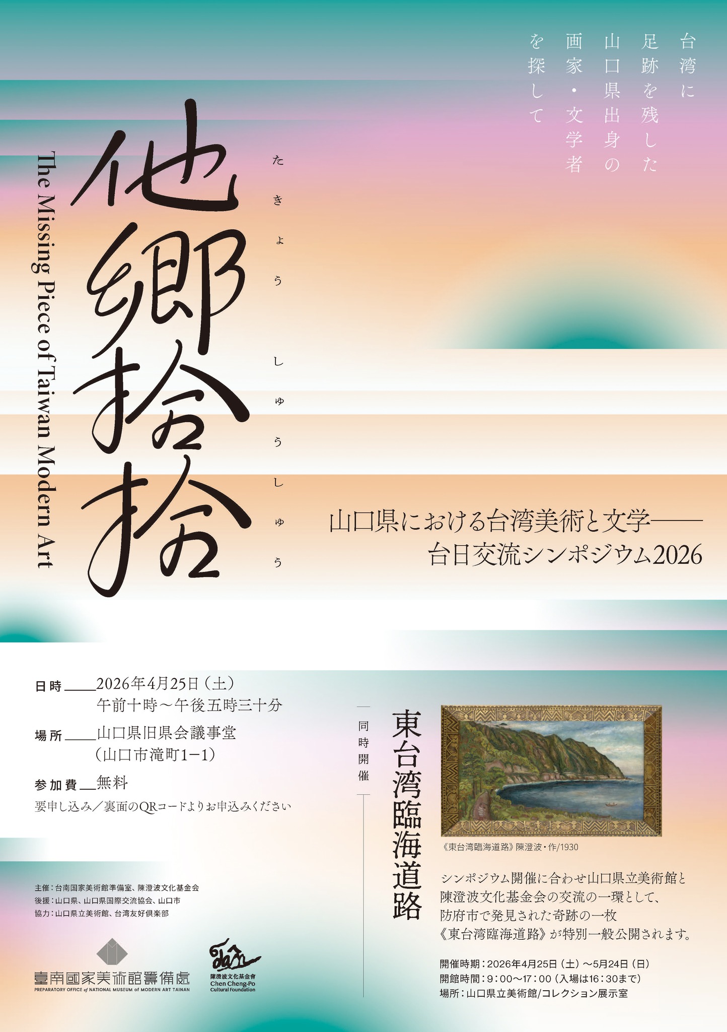 2026年4月25日(土)に山口県旧県会議事堂にて台南国家美術館準備室と陳澄波文化基金会の共催で台日交流シンポジウム「他郷拾拾 たきょうしゅうしゅう」が開催されます。