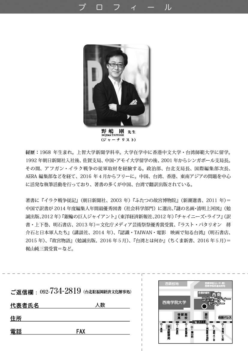 【お知らせ】4/8 野嶋剛先生「台湾とは何か-新時代の隣人を考える-」講演会インフォメーショ... - Fukuoka Branch, Taipei Economic and Cultural Office in Osaka 台北駐大阪經濟文化辦事處福岡分處 :::