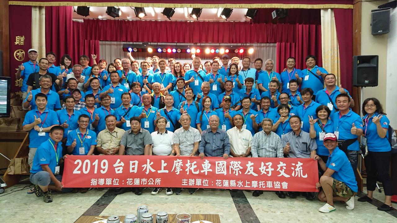 2019/05/09我國花蓮縣水上摩托車協會跨越黑潮前往日本石垣市及與那國町進行交流--與那國町町長外間守吉(中)率該町幹部歡迎花蓮縣水上摩托車協會一行到訪。