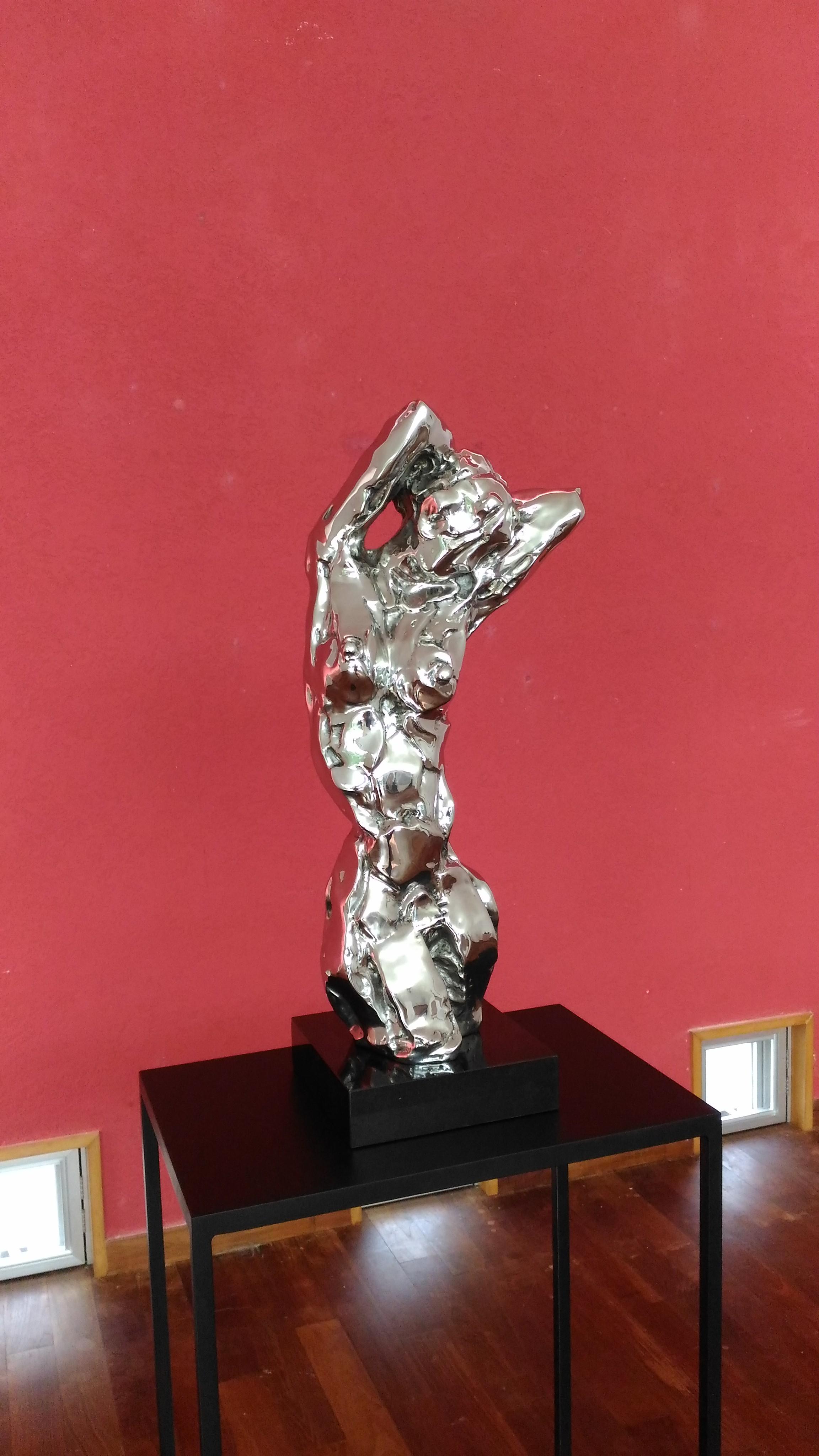 儀式結束後,余氏親自說明作品創作歷程,使用材質包括黏土、不鏽鋼、鐵器等,其中部份作品係累積失敗經驗後的成果。