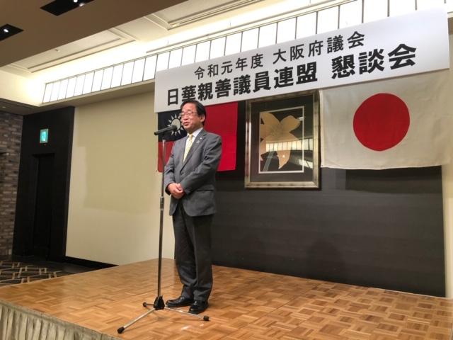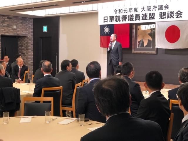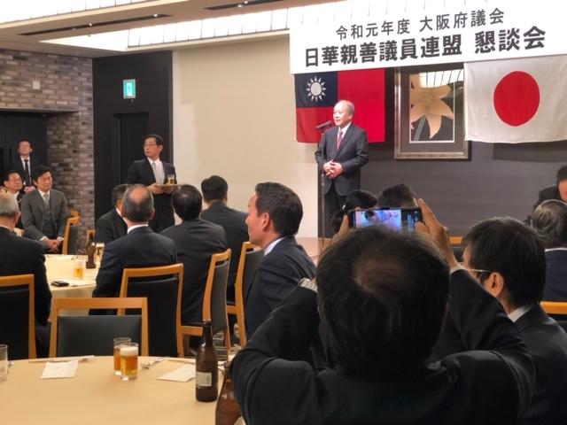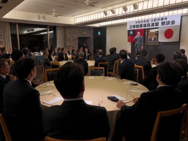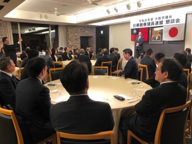 駐大阪辦事處李世丙處長偕李碧娟秘書於本(108)年12月9日出席大阪府議會「日華親善議員聯盟」總會及懇親會,並應邀以「最新台灣事情(現況)」發表專題演講。計有該議員聯盟松本利明會長、三宅史明副會長、大阪府議會三田勝久議長、西惠司副議長等30餘名議員與會,大阪中華總會洪勝信會長、大阪中華學校連茂雄理事長、欣華會李忠儒會長、大阪華僑南華公會代表等僑領、大阪台貿中心林志鴻所長等亦應邀出席懇親會。