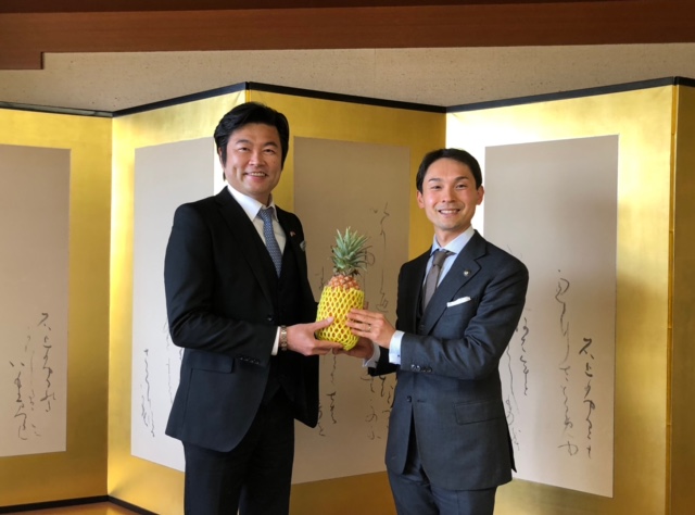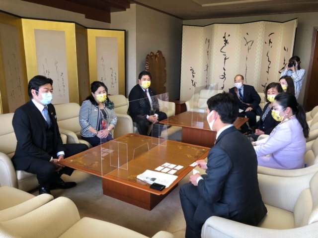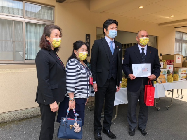 駐大阪辦事處李世丙處長於本(110)年4月27日偕同楊慧萍秘書及李碧娟秘書,以及日本關西媽祖會川野榮子會長偕幹部一行共同拜會奈良縣天理市並河健市長、議會大橋基之議長、市本貴志副議長、石津雅惠議員、籔内康裕事務局長,另神戶市議會上畠寬弘議員同行,雙方就議會、城市、體育、青少年、農產品交流等議題交換意見,隨後拜訪天理兒童養護設施「養德院」久保悟院長。拜會時李處長及川野會長捐贈口罩、臺灣鳳梨及防疫關懷包由並河市長、大橋議長及久保院長代表受贈。 1.李世丙處長(右6)、川野榮子會長(左5) 、石津雅惠議員(右2)及上畠寬弘議員(左3)一行拜會大橋基之議長(右5) 2.李世丙處長率一行與天理市議長等人交流座談 3.李世丙處長(左)贈送台灣鳳梨予並河健市長(右) 4.李世丙處長(左1)、川野榮子會長(左2)一行與並河健市長座談交流 5.李世丙處長(左3)、川野榮子會長(左4)贈送口罩、鳳梨及消毒液予養德院,由久保悟院長(左5)代表接受 左至右:媽祖會林淑芬副會長、川野榮子會長、李世丙處長及久保悟院長