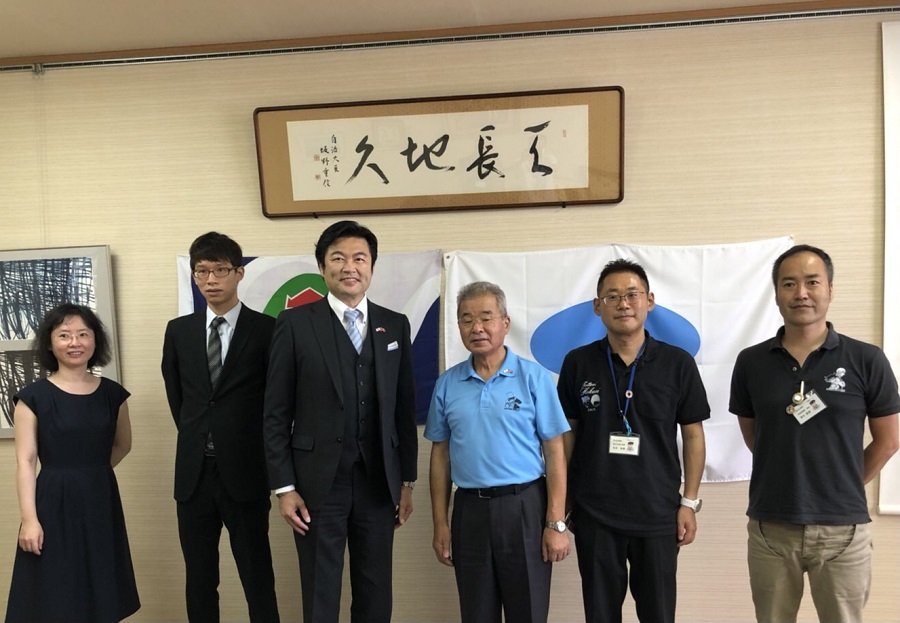 駐大阪辦事處李世丙處長偕吳承翰秘書及李碧娟秘書於本(110)年8月12日拜會鳥取縣北榮町松本昭夫町長及幹部,就推展地方交流事宜交換意見。