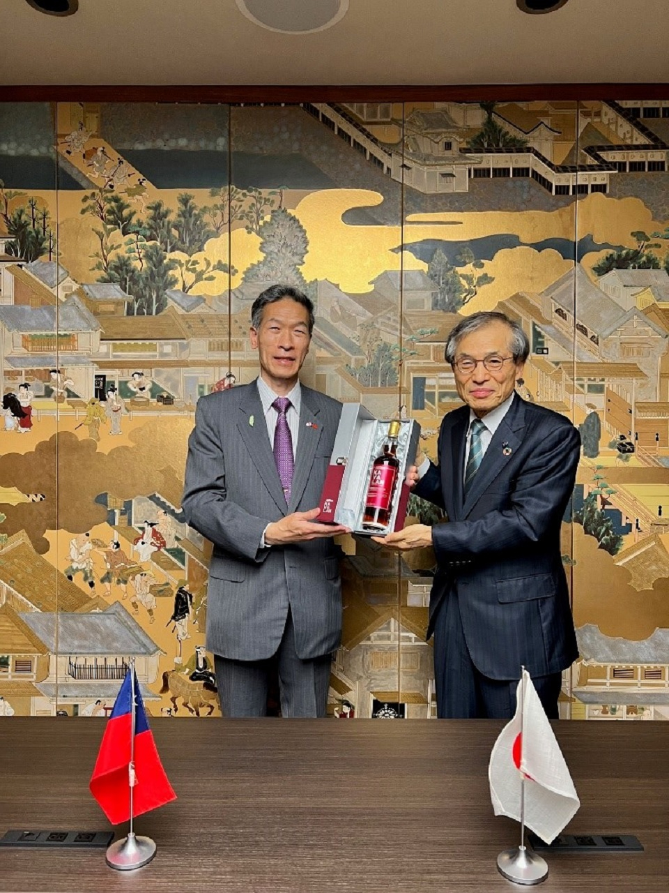 向明德處長致贈西尾總長國產威士忌酒紀念品