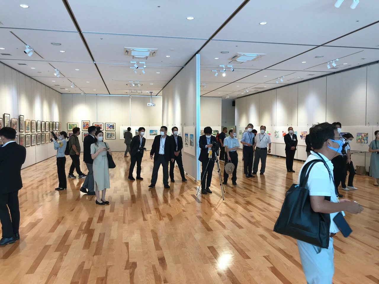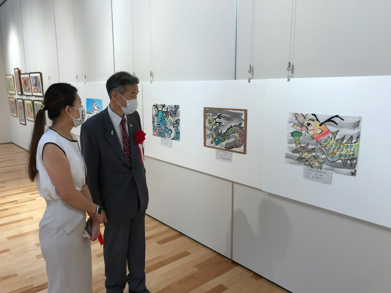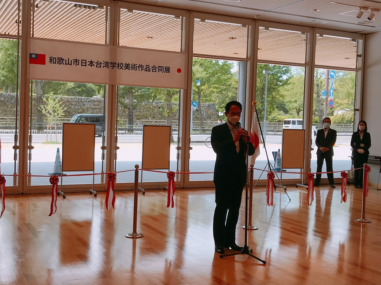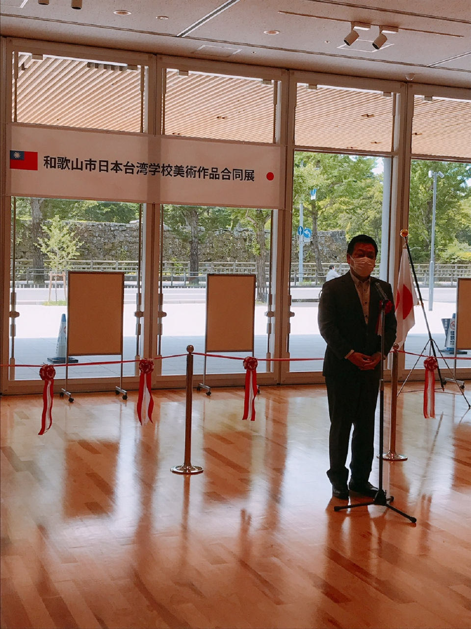 駐大阪辦事處向明德處長偕林育柔教育秘書於7月13日前往和歌山城演藝廳出席「2022和歌山第一回台日學校美術作品聯展」開幕式活動。 本次作品聯展特別邀請來自我國新竹縣新豐鄉新豐國小、關西鎮關西國小及尖石鄉梅花國小等3所學校學生作品跨海前來展出;和歌山市當地則有市立和歌浦小學校、市立伏虎義務教育學校等2所學校的學生作品共同展出。 向處長致詞時表示,疫情期間雖無法互訪交流,透過美術作品能夠增進對於彼此生活樣貌與文化特色之理解,別具意義。並介紹在台舉辦超過半世紀的「世界兒童畫展」活動,邀請和歌山市的國中小學生,能夠踴躍參加明年的畫展。 和歌山市尾花正啓市長及和歌山市議會戶田正人議長等人亦應邀致詞,共襄盛舉。