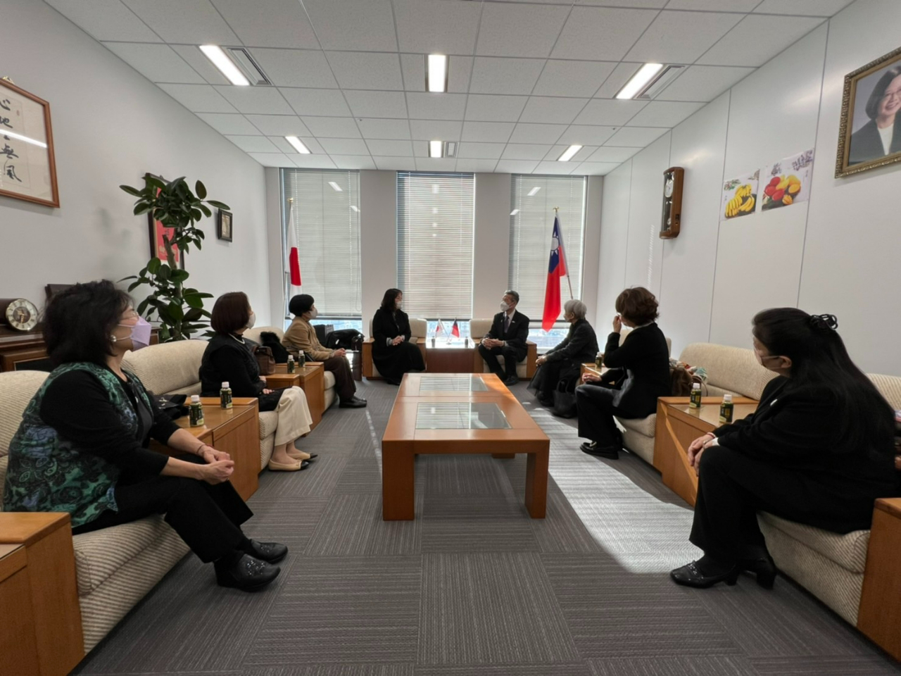 大阪中華總會婦女會於本(112)年1月4日由尤博美會長率幹部及理監事一行來處新年拜會,由向明德處長接見,楊慧萍秘書陪同。向處長除感謝婦女會鼎力支持駐處及政府政策外,雙方並就未來臺灣兵役制度時間延長及婦女會將於大阪春節祭設攤等議題交換意見。