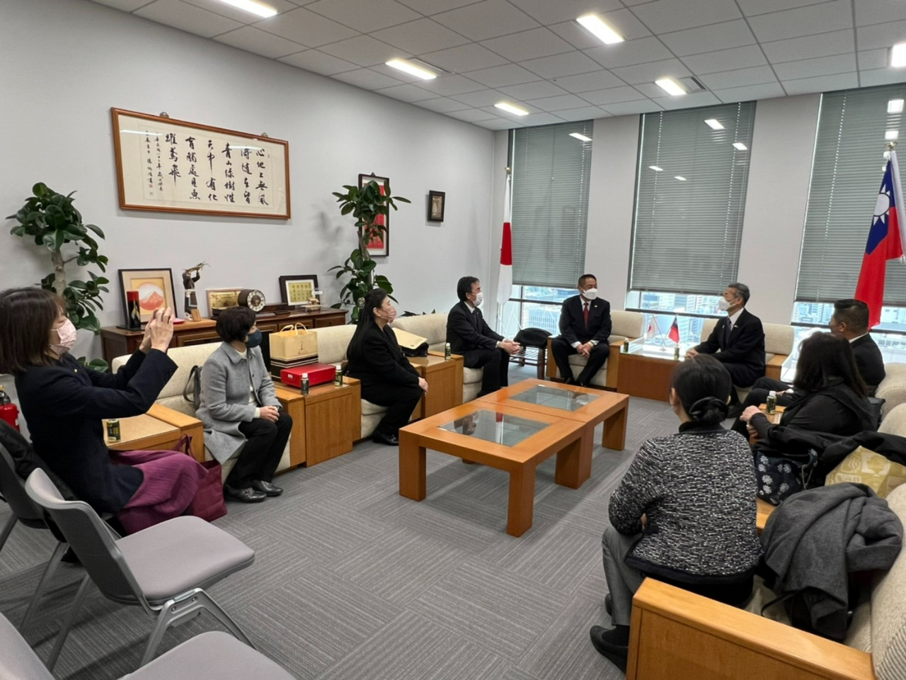 日本欣華會於本(112)年1月4日駐處新春上班首日,由李忠儒會長率孫建綱會長代行等幹部一行,拜會駐大阪辦事處,由向明德處長接見,楊慧萍秘書陪同。大家除互道新春恭喜,因欣華會與大阪中華學校關係淵源,雙方並就學校現況及未來發展等議題交換意見。
