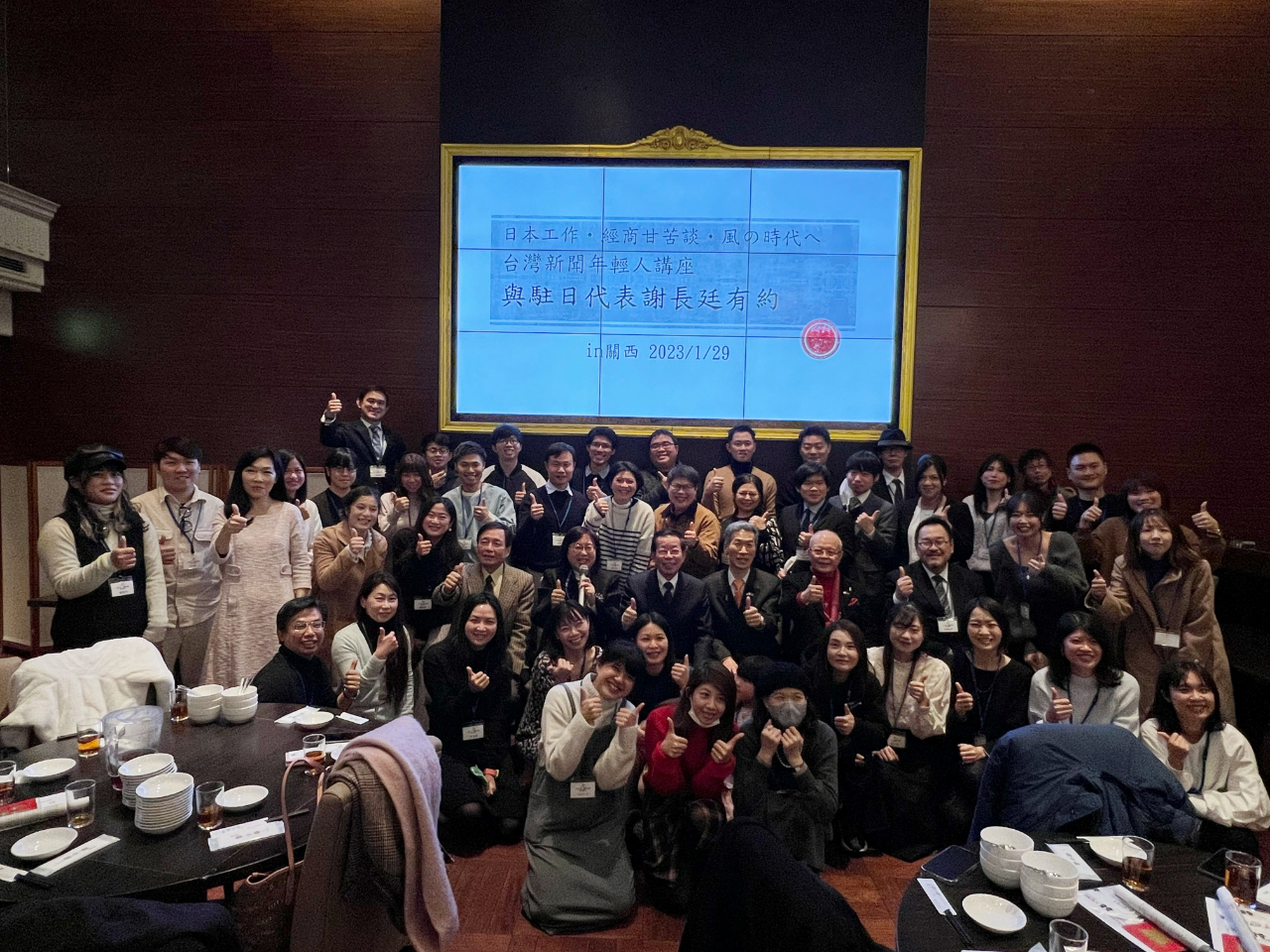 本(112)年1月29日由「台灣新聞社」主辦,駐大阪辦事處協辦,於大阪華中華餐廳舉行「日本工作經商甘苦談・風の時代へ」僑青講座,邀請50名旅居關西地區的僑青參加,駐日本代表處謝長廷大使、駐大阪辦事處向明德處長及日本中華聯合總會青年部又井公久部長特別出席共襄盛舉。活動由「台灣新聞社」錢妙玲社長主持,她鼓勵年輕人多從事志工或參與僑社活動,藉此累積未來的人脈資源。謝大使則以自身經驗暢談擁抱理想而奮鬥的重要性;向處長則表示日本是注重團體組織的民族,鼓勵僑青多參與僑團。現場僑青踴躍提問,謝大使風趣幽默的回應,親民的形象也讓僑青印象深刻