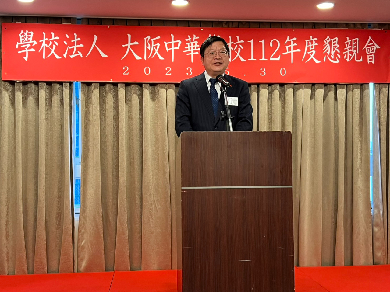 大阪中華學校於本(112)年5月30日召開理監事會議,由連茂雄理事長主持、蔣燁校長就學校現況、年度計畫等進行報告;駐大阪辦事處洪英傑處長偕員受邀列席。會議結束後續舉辦懇親會,洪處長致詞感謝該校在海外積極推廣華文教育,並表示有關學校遷校一事也會盡最大的努力提供協輔。連理事長也特別感本處提供相關協助。續由大阪中華總會副會長友田律人代理會長領導乾杯、洪里勝信名譽會長致閉幕詞,餐會氣氛熱絡、圓滿結束。