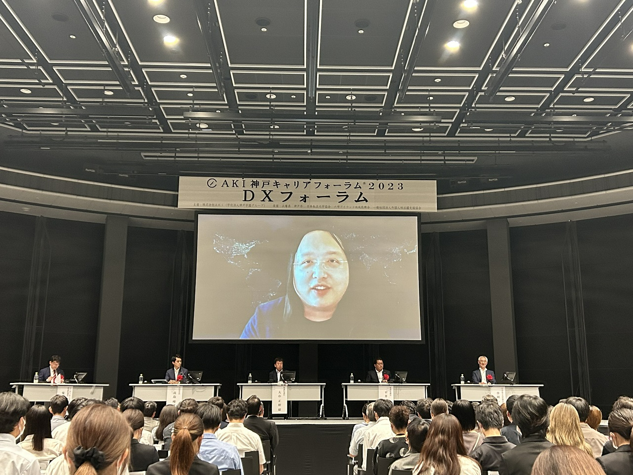 學校法人神戶學園集團(蔣惠萍總長)本(112)年8月7日於神戶市舉辦「2023年AKI神戶職涯論壇」活動,其中「數位轉型論壇」活動特別邀請數位發展部唐鳳部長透過視訊進行「台灣與日本-數位與基本價值的共享」專題演講。