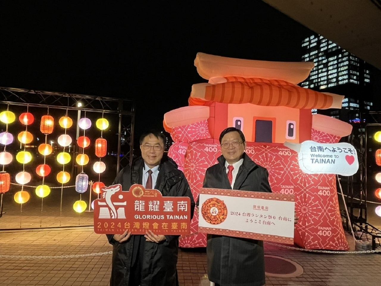 本處洪處長與台南市黃偉哲市長參加大阪「光之饗宴」光雕開幕活動,並參觀該市活動攤位。