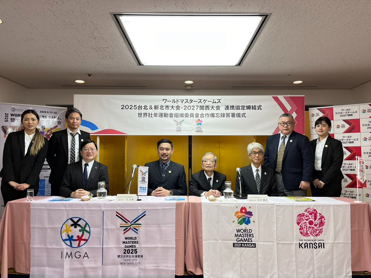 本協議由臺北市政府體育局王泓翔局長(兼雙北世界壯年運動會組織委員會副執行長)與關西世界壯年運動會組織委員會山下博夫事務總長共同簽署。台日雙方將據以積極推動行銷宣傳之交流,提升雙方賽會知名度、促進全球壯年人口運動風氣。