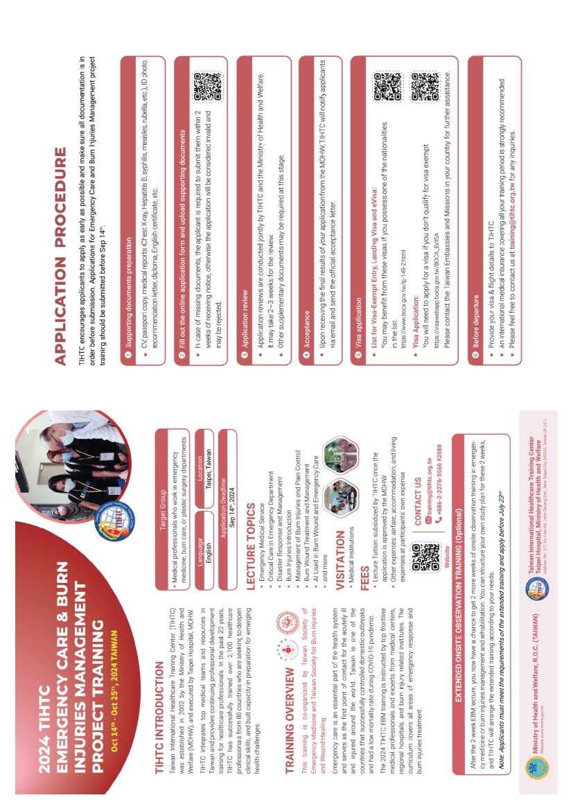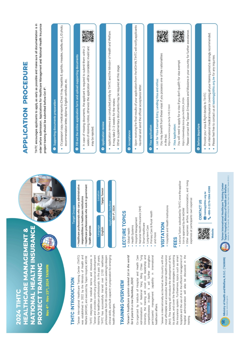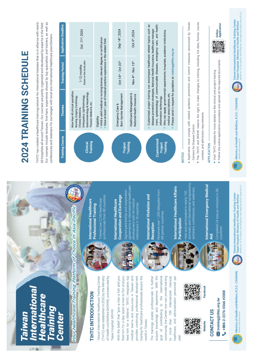 「臺灣國際醫療衛生人員訓練中心(TIHTC)」計畫培訓課程開放報名,歡迎醫事人員來臺參訓。