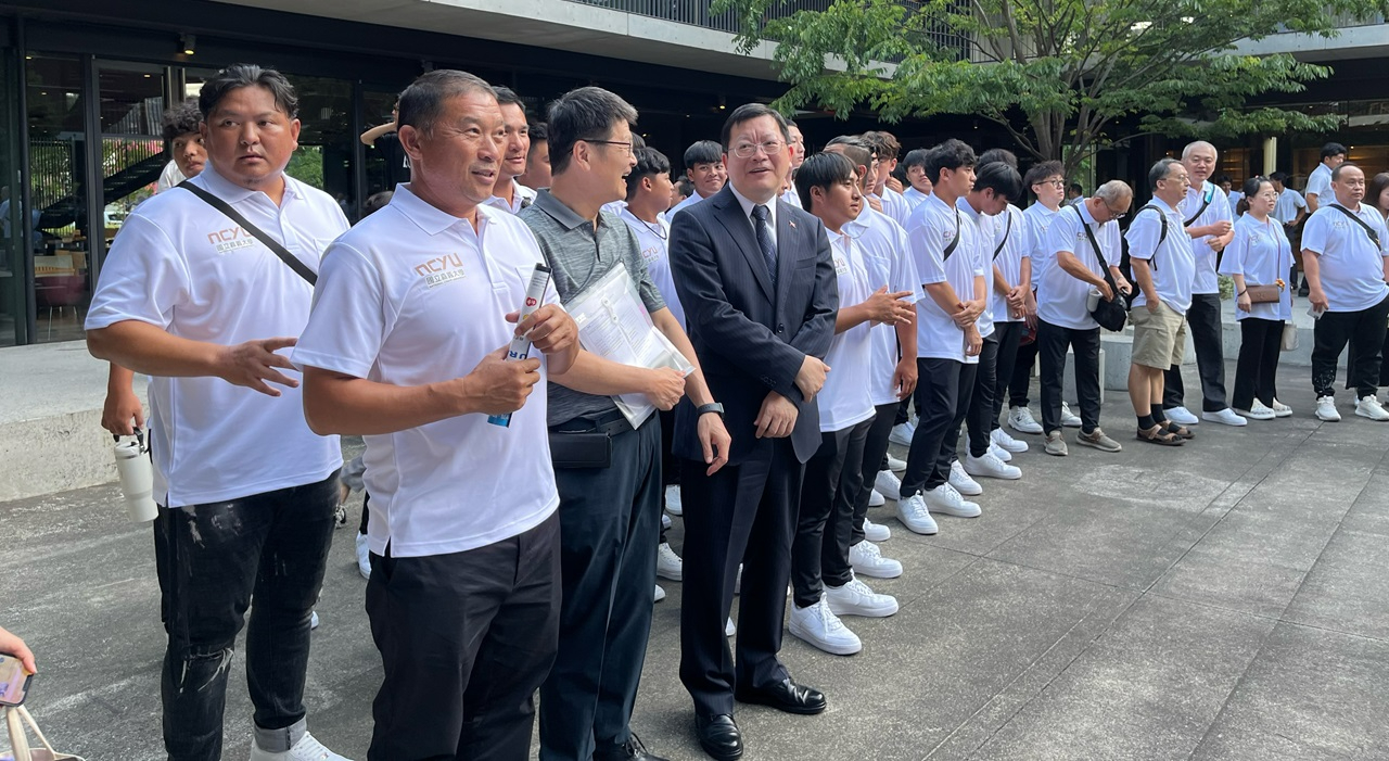 洪處長、嘉義大學林翰謙校長與嘉義大學棒球隊成員