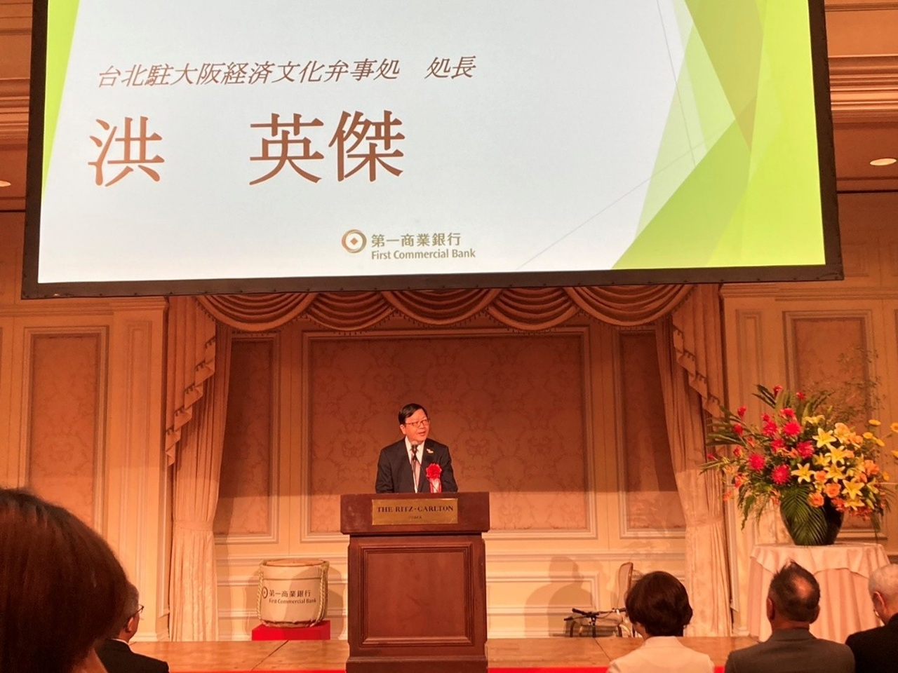 駐大阪辦事處洪英傑處長於本(114)年8月1日應邀偕員出席我國第一商業銀行大阪出張所開業慶祝酒會。