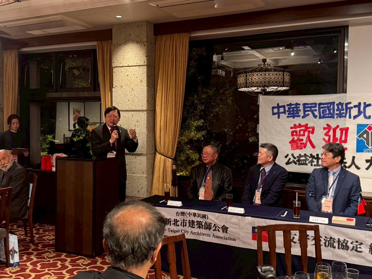 本處洪處長於本(2025)年11月27日晚間受邀出席見證新北市建築師公會與大阪府建築士會締結友好交流協定,簽署儀式由台方公會汪理事長俊男、日方公會岡本森廣會長及洪處長三人代表致詞。