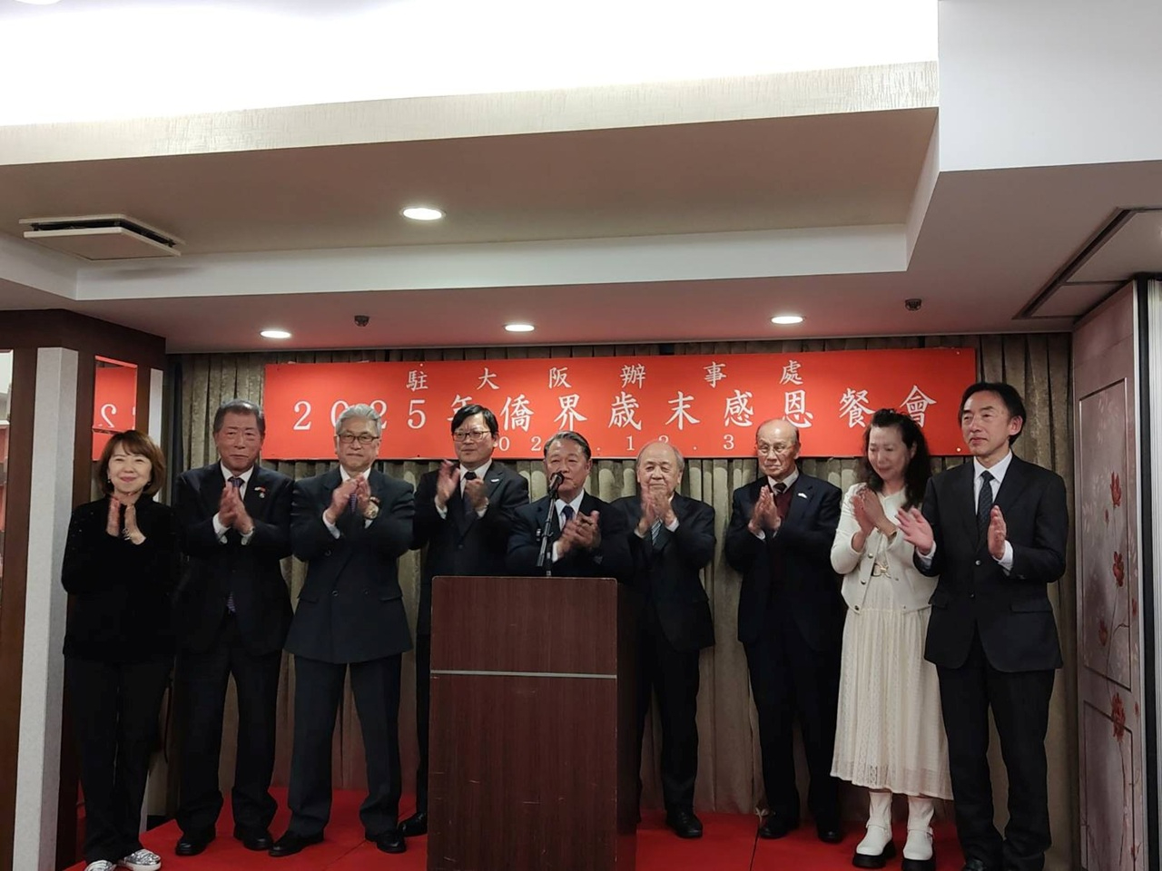 洪處長致詞感謝各位長期以來對僑務工作的支持與協助,無論是推動文化交流、協助各項僑務活動、或在地方政府合作上提供專業意見,展現出在日僑界的團結力量;並指出,2025年對臺灣與日本交流別具意義,期盼未來與僑界攜手,持續向日本社會展現臺灣多元文化與民主價值。
