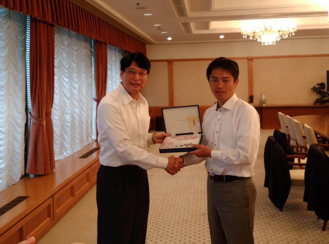 張處長仁久於7月11日下午前往大阪市役所拜會大阪市長吉村洋文,感謝吉村市長本年1月底協助台北市長柯市長及各地方政府訪阪考察,盼吉村市長能撥冗造訪臺灣,深化大阪與臺灣之地方交流。