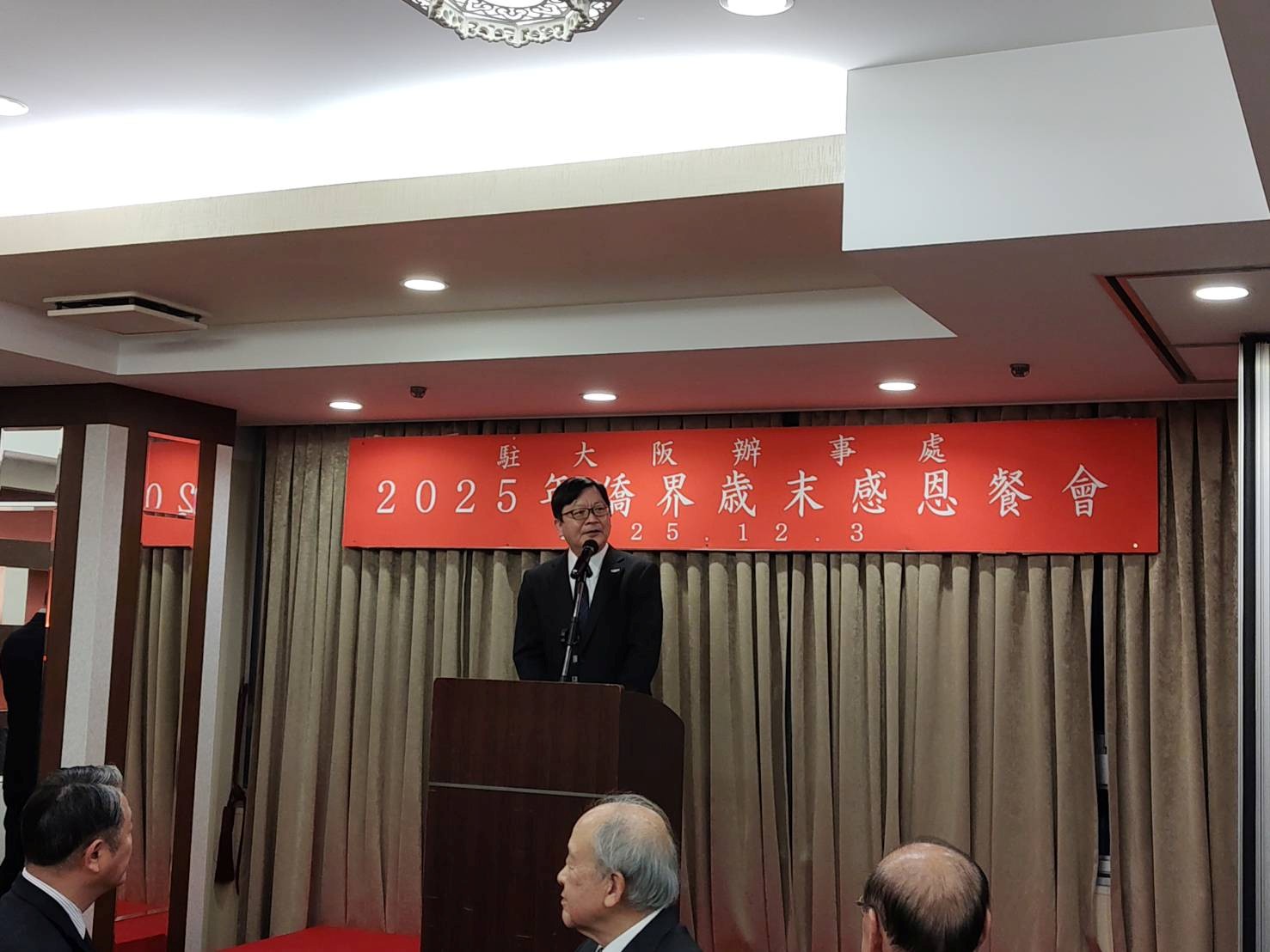 駐大阪弁事処は、2025年(民国114年)12月3日夜、「2025年僑界歳末感恩餐会」を開催し、洪処長が主催を務めた。当日は、関西地区の僑務栄誉職員、僑界リーダー、華人団体代表および事務所職員ら約80名が出席した。