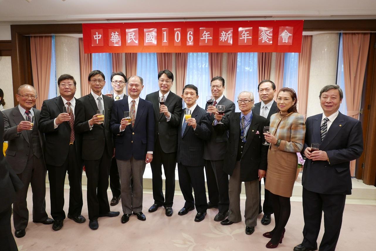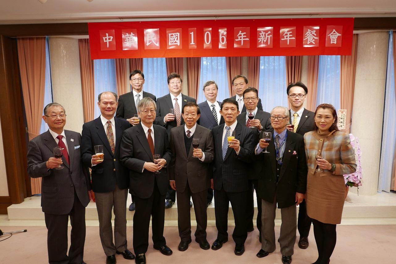 駐日本代表處於1月6日中午在大使官邸舉行「中華民國106年新年會」,除邀請日本台灣交流協會理事長今井正、日本中華聯合總會會長毛友次、關東地區僑領及友我日籍人士參加外,駐處粘處長亦陪同橫濱華僑總會會長羅鴻健、副會長及僑務榮譽職人員應邀與會,現場嘉賓雲集,氣氛熱鬧。 駐日謝大使致詞時首先引用「雞」與「吉」之諧音祝賀所有來賓雞年「大吉大利」,另針對日本交流協會自本年1月1日起正式改名為「日本台灣交流協會」乙事表示歡迎,指出台日關係近年發展迅速,人民情感密切友好,盼能藉此契機使台日交流更上一層樓。 新年會在日本中華聯合總會會長毛友次領導乾杯後開始懇親,出席貴賓互道年禧,現場新春喜氣洋洋。