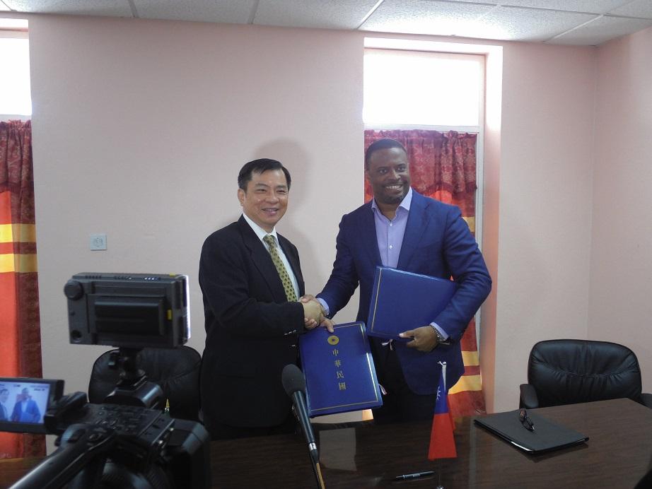 駐館丘大使高偉與克國外交部長Mark Brantley於本(6)月10日上午在克國政府辦公大樓共同簽署新雙邊合作協定,克國外交部常務次長Kaye Bass、主管國際組織事務官員Samuel Berridge、主管亞太事務官員Shannel Simmonds等官員均在場觀禮,克國國家新聞處(SKNIS)派員在場採訪。儀式由丘大使與B外長共同簽署協定並交換約本完成,儀式簡單隆重。