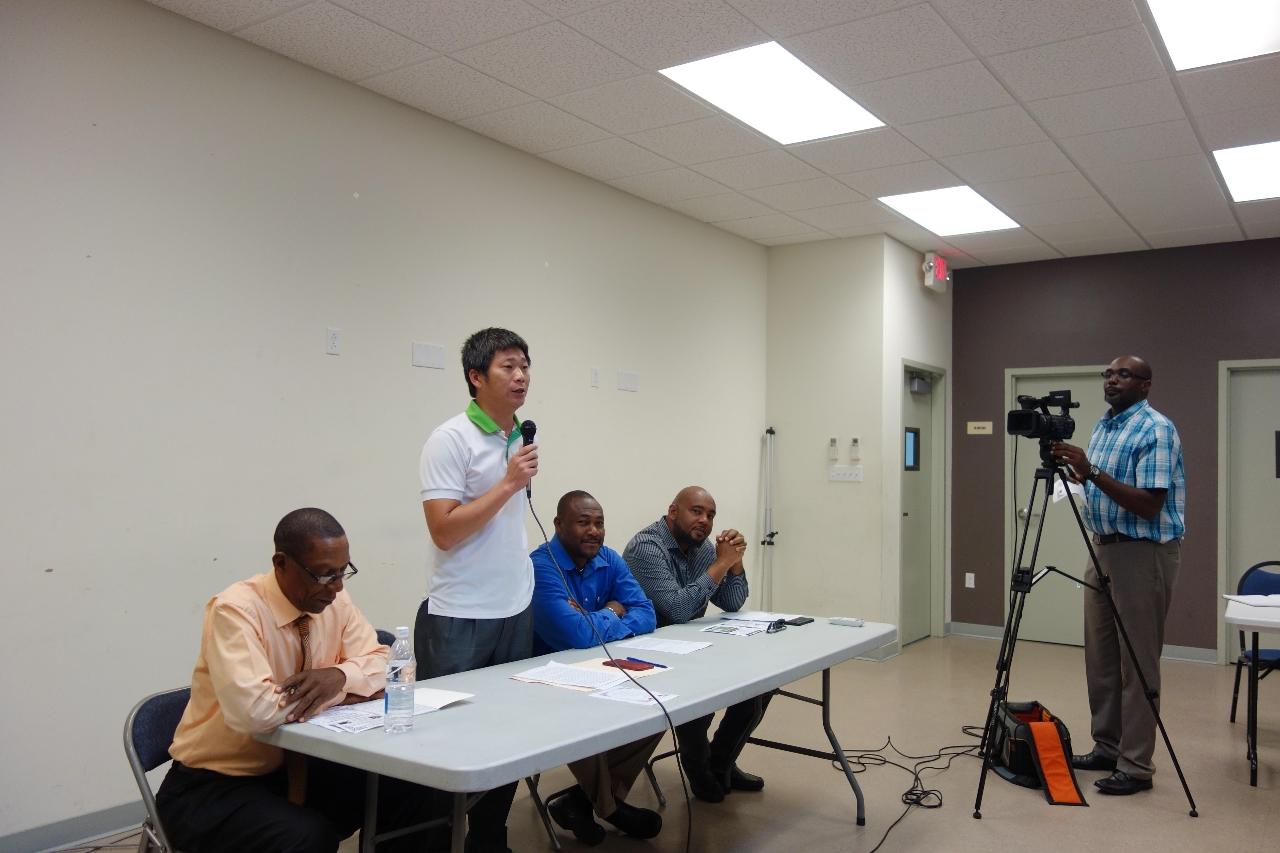「農業因應氣候變異調適能力提升計畫」技師游松翰於活動後接受克國尼維斯島政府災害管理局(Nevis Disaster Management Department, NDMD)採訪