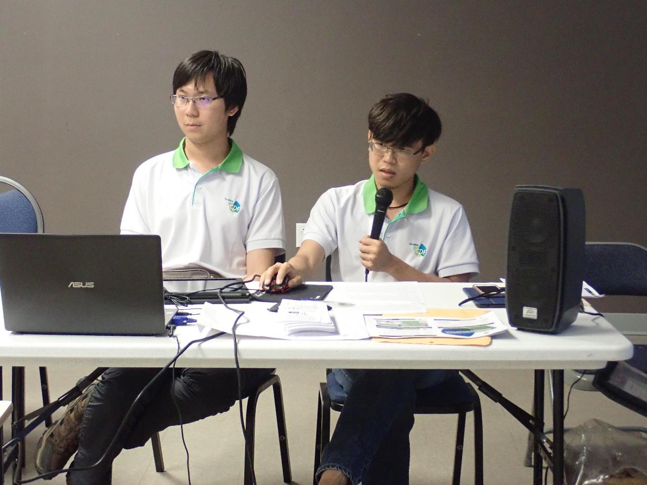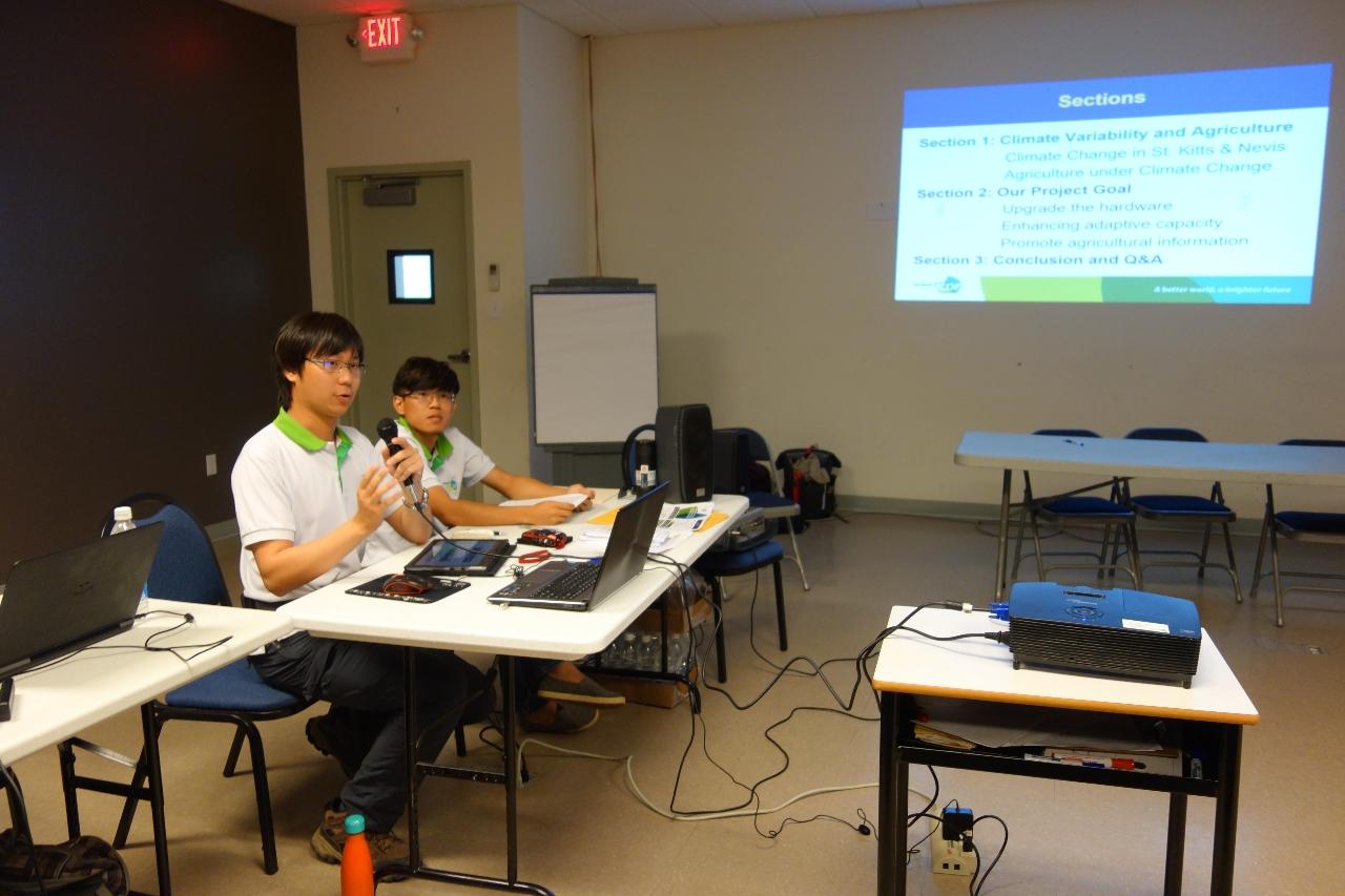 我國合會計畫游技師松翰及黃技師凱煜於現場介紹氣象資料蒐集設備、作物調適能力提升執行方法及農業資訊平台建構內容,並針對每個部分說明讓農民瞭解氣象站之必要性及未來預期之效益。