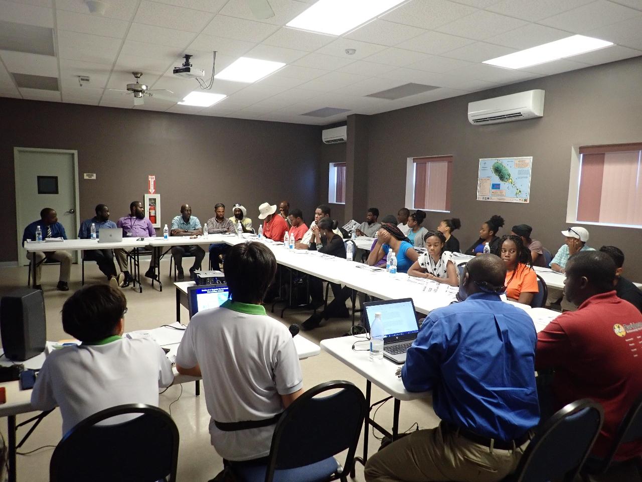 我國國際合作發展基金會在聖克里斯多福及尼維斯國推動之「農業因應氣候變異調適能力提升計畫」於107年7月19日在尼維斯島農業部舉辦農業應用資訊推廣活動,由尼維斯島農業局推廣組組長Walcott James與我國合會計畫團團長呂育銘共同主持,尼維斯島農業局官員、尼維斯島災害管理局(Nevis Disaster Management Department, NDMD)官員及農民等共計30人參加。