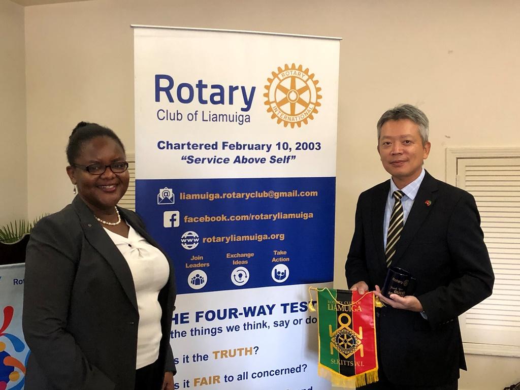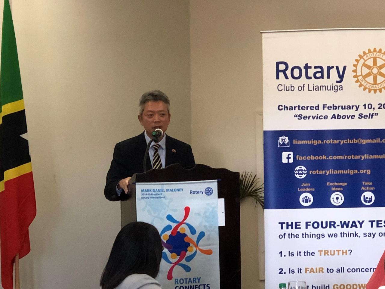 駐聖克里斯多福及尼維斯大使館李大使志強於本(108)年10月16日上午應邀參加聖克里斯多福及尼維斯Liamuiga扶輪社早餐會,並以貴賓身分發表演講。