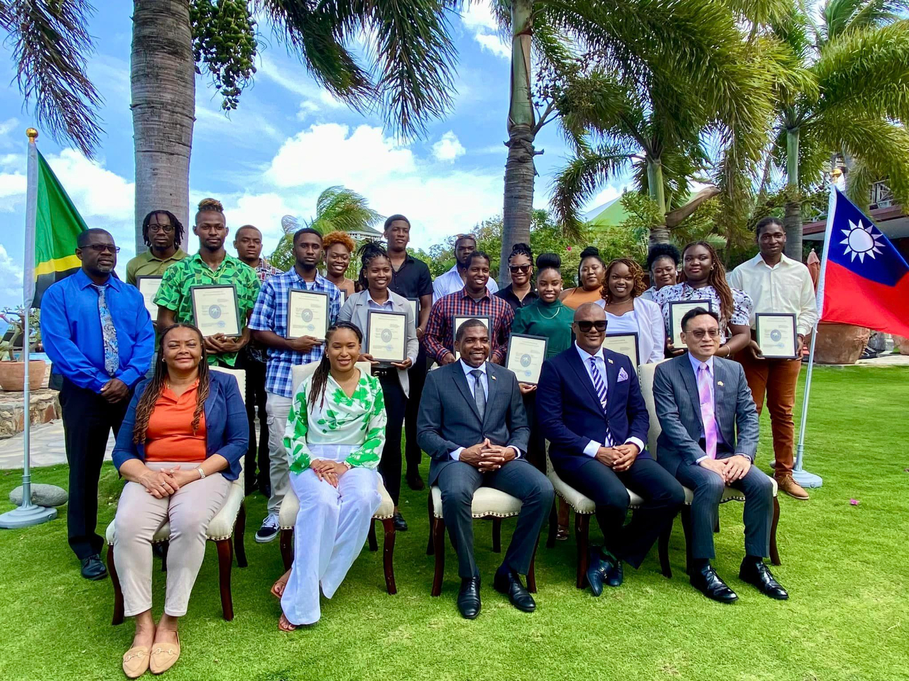 本館林大使昭宏於8月23日中午主持外交部台灣獎學金及國合會獎學金頒獎典禮,聖克里斯多福及尼維斯總理德魯(Terrance Drew)伉儷、副總理兼教育部長韓利(Geoffrey Hanley)及內閣秘書長(Marcus Natta)率教育部官員應邀出席,總理、副總理及林大使致詞恭喜獲獎16位學生,勉勵在台求學積極進取、孜孜不倦,並期許學業有成、更上層樓。