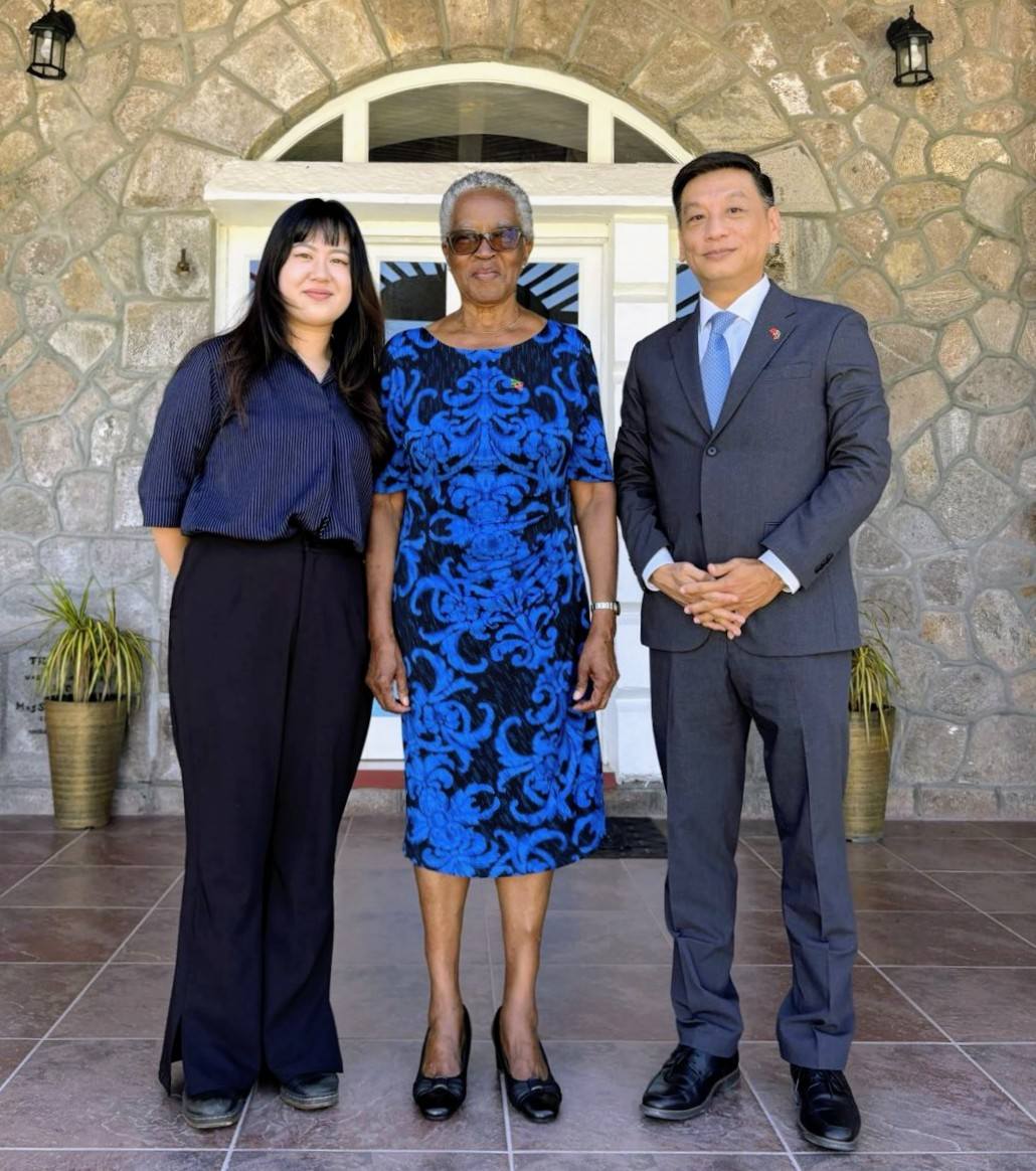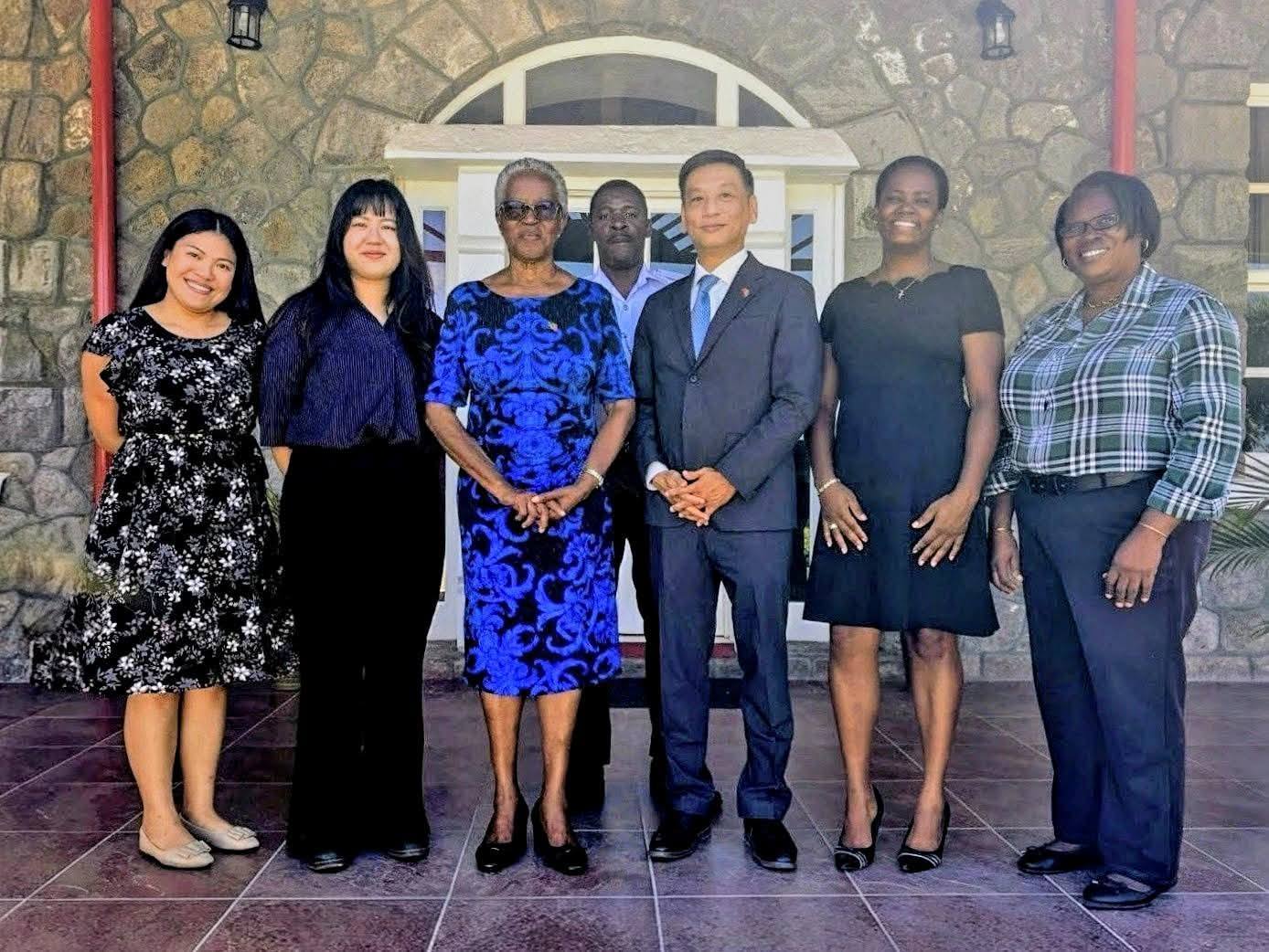 1 月 16 日,本館陶令文大使在徐采婷秘書陪同下,前往尼維斯島拜會副總督萊柏夫人(Her Honour Mrs. Hyleta Liburd),並正式引介新到任之國合會(TaiwanICDF)華語教師游謹嘉女士。