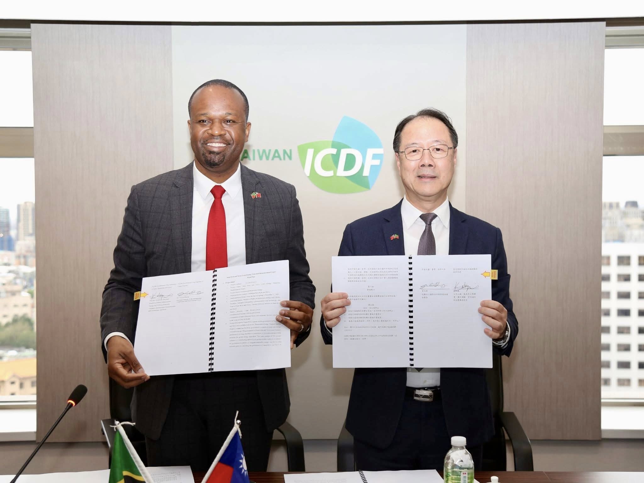 財團法人國際合作發展基金會(國合會)於3月9日與聖克里斯多福及尼維斯政府正式簽署「綠色能源轉型示範計畫」,由聖克里斯多福及尼維斯公共建設、能源與公用事業、國內交通、資通訊及科技暨郵政部長梅納(Hon. Konris Maynard)代表簽署,國合會則由史立軍副秘書長代表黃玉霖秘書長交換約本,象徵雙方攜手推動能源轉型合作正式啟動。