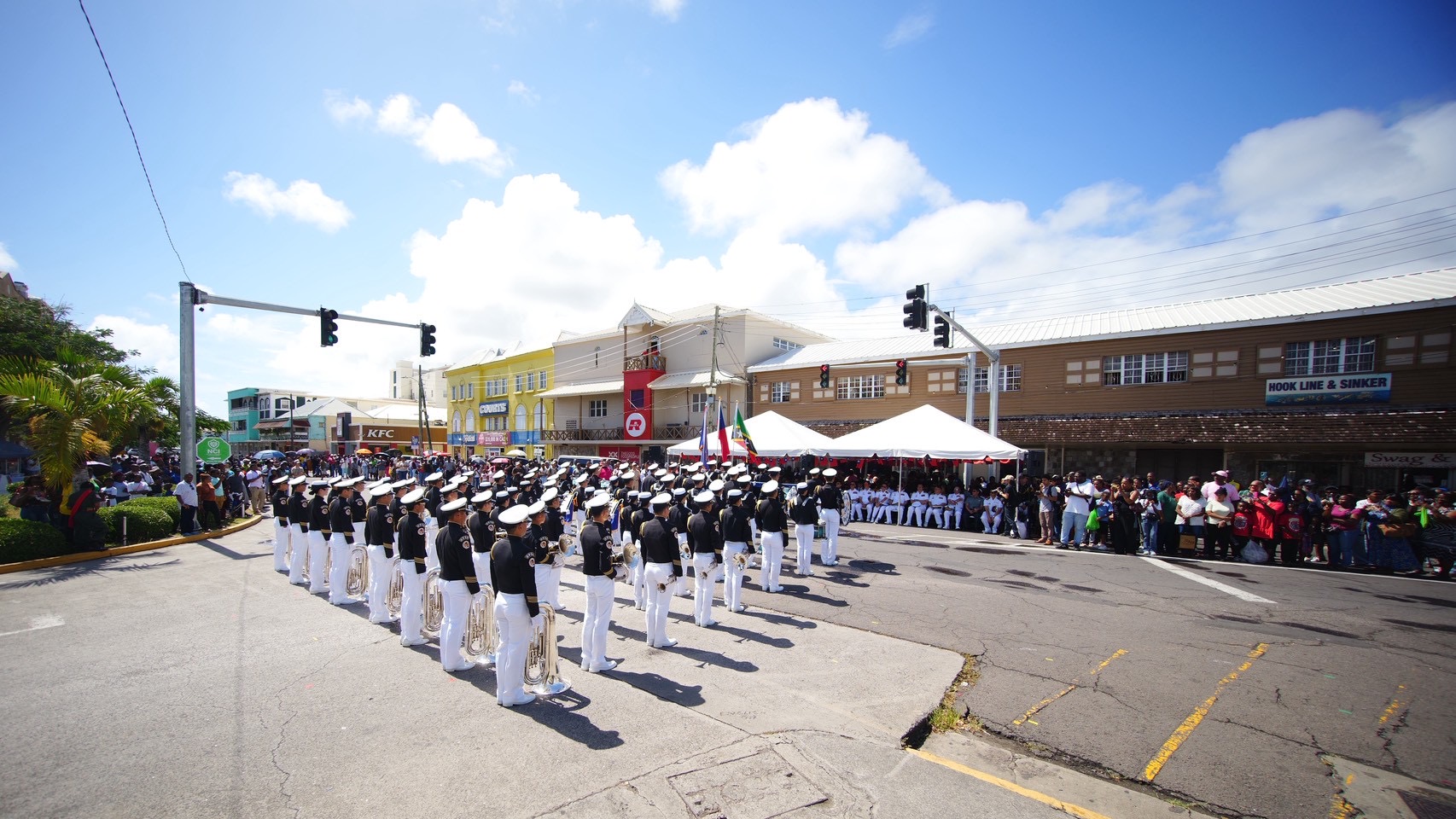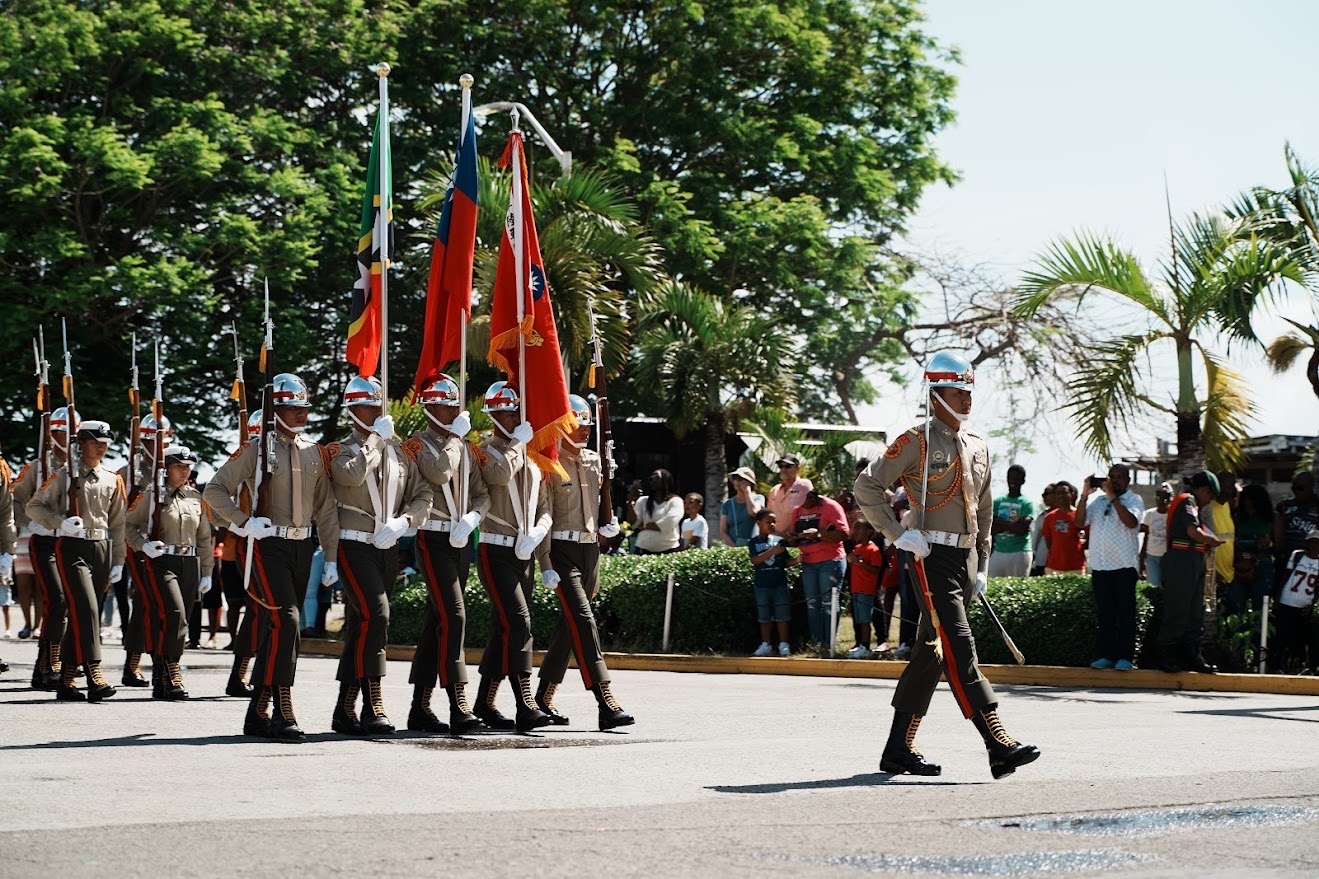 克國政府4月10日上午在首都巴士底桑德港(Port Zante)舉行迎賓典禮,歡迎由支隊長陳明峯少將率領的「磐石艦」、「迪化艦」及「岳飛艦」抵訪。總督萊柏偕總理德魯、副總督萊帛及尼維斯島行政首長布蘭特利等政府高層出席。德魯總理致詞表示,此次敦訪彰顯臺克兩國深厚邦誼,鼓勵官兵們在停留期間到當地名勝參訪,體驗克國的美麗風光與多采文化,蓋真正的夥伴關係根植於雙方人民的互動交流。典禮結束後,陳支隊長率幹部迎接萊柏總督登臨磐石艦,並陪同參觀「敦睦文宣館」。