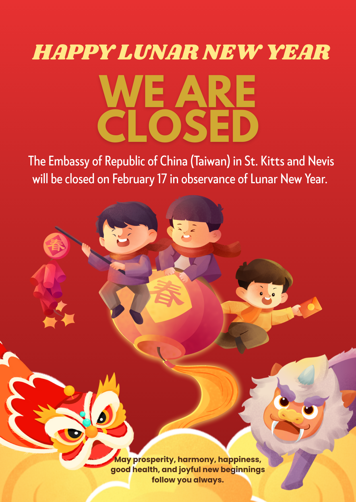 【Notice】The Embassy will be closed on February 17, 2026 (Tuesday) in celebration of the Lunar New Year. Public services will resume on the next working day.