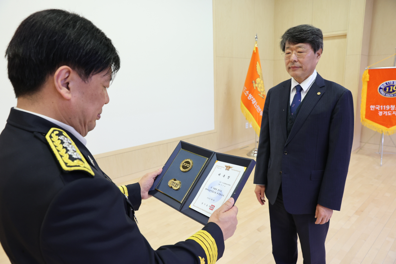 趙善鎬授予僑務促進委員鄒新強名譽消防署長