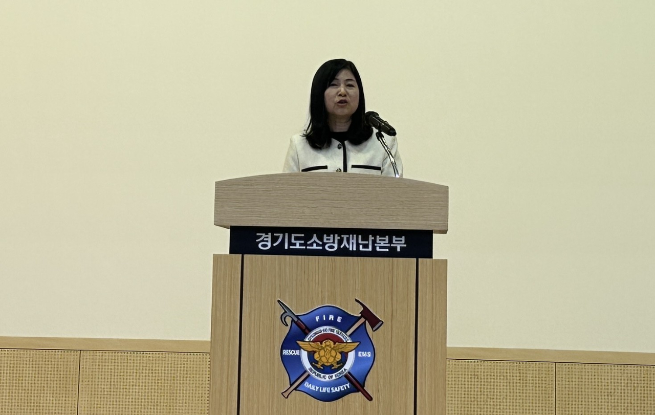 趙善鎬說明京畿道青少年消防隊創立目的為擴大宣導安全文化,目前共有近180位外國人隊員,有鑒多元文化社會時代的來臨,未來消防本部也將持續積極促進多元文化參與韓國消防活動,增進相互交流。