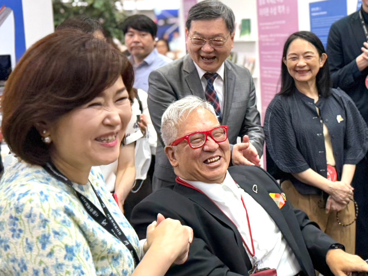 現任駐韓國臺北代表部大使梁光中到場參與贈書典禮,他才剛從第38屆台韓觀光交流會議」木浦市趕回首爾,表達出臺韓文化觀光都創下新高峰,觀光人次上衝刺互訪達300萬人次。