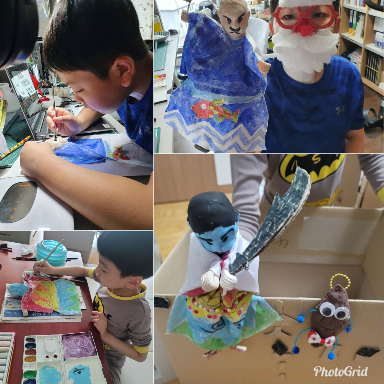 今天活動分二組進行,一組為國劇臉譜彩繪+工筆畫體驗,另一組則是布袋戲偶彩繪+工筆畫體驗,二位老師先以PPT介紹傳統戲曲、臉譜種類、臺灣三大傳統偶等等,讓大家先有初步的認識,之後教導如何幫它們上色,參加的小朋友,在老師與家長帶領下,完成自己心目中的臉譜與布袋戲偶。