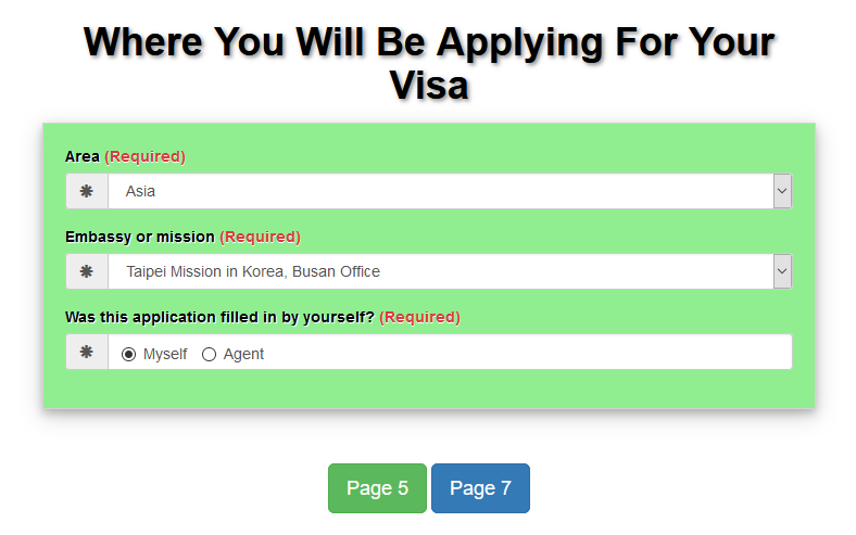 - 이 외의 지역 ( 서울시, 인천시, 대전시, 세종시, 경기도, 강원도, 충청남북도, 전라북도 ) 는 주한국타이페이대표부 ( TEL : 02-6329-6003 )관할입니다.
