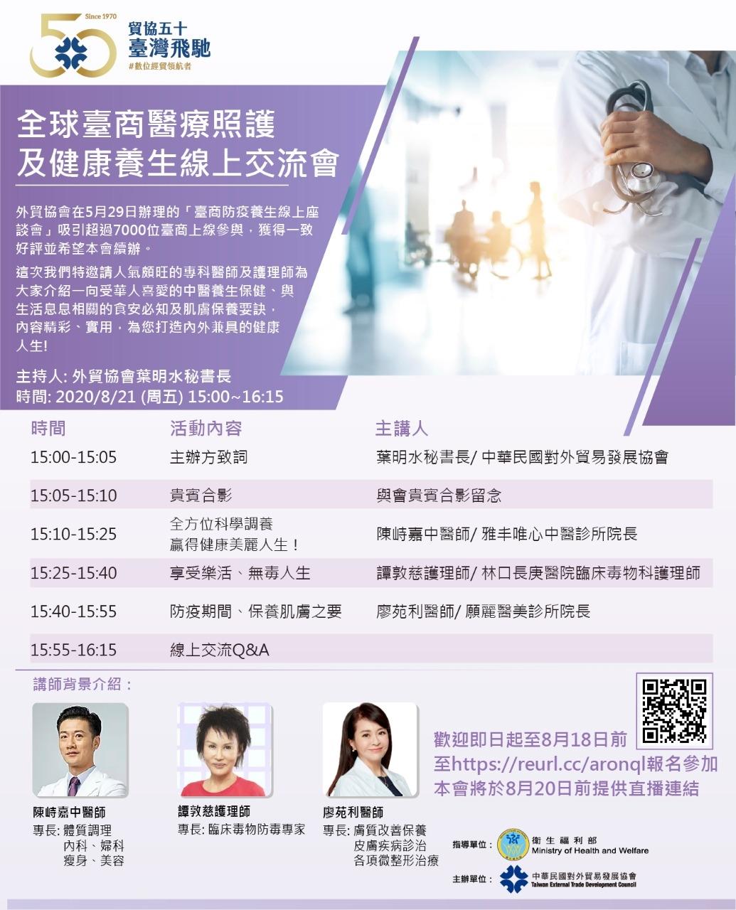 TAITRA hosts the Virtual Exchange Conference : The Medical and Health of Global Taiwanese Businessmen for Overseas Taiwanese.