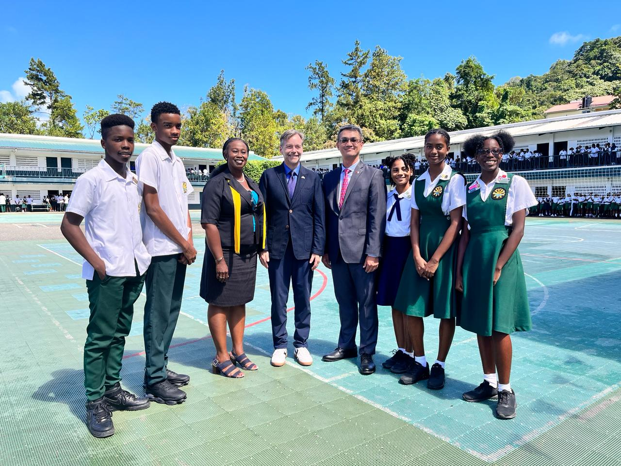 駐聖露西亞陳家彥大使很高興與美國駐巴貝多大使Roger F. Nyhus造訪台灣捐贈Leon Hess中學的「多媒體智慧教室」,聆聽師生展示透過我國「聖露西亞資訊科技融入教學發展計畫」及美國開發總署「ConnectED」計劃,有效提升運用多媒體設備進行教學和學習體驗的成果。感謝Leon Hess中學校長Florence Gustave-Denis的悉心安排,以及教職員和全體同學的熱情歡迎,我們期待未來台、美、露在更多領域的共同合作。