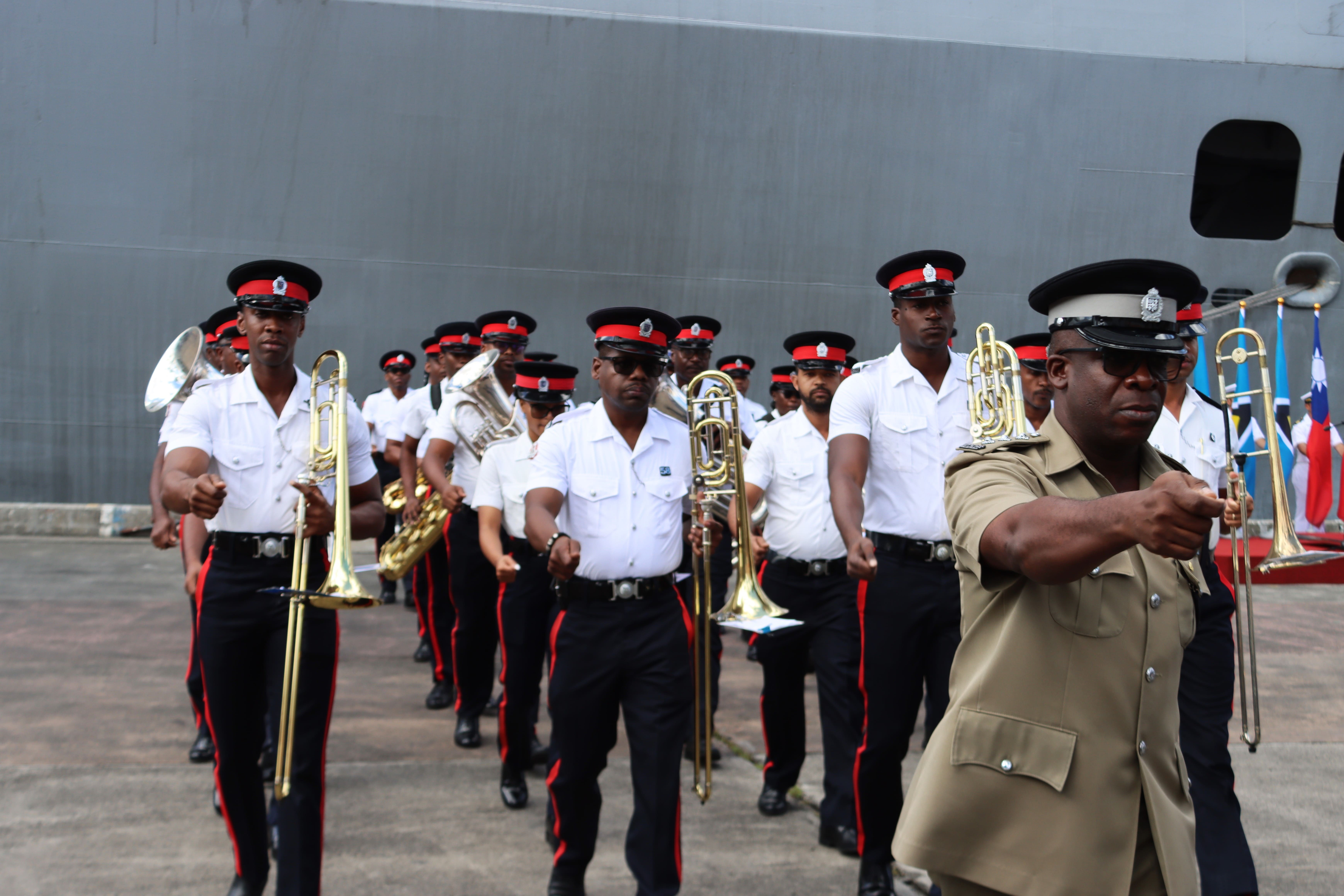 感謝聖露西亞政府的邀請和安排,我們的海軍接受了熱烈的歡迎儀式,包括露國外長和許多內閣閣員親自到場歡迎。露國警察樂隊與台灣海軍皆輪番帶來令人印象深刻的演出,現場氣氛熱烈非凡。特別是台灣海軍透過鼓號樂隊表演、樂儀隊操演及莒拳隊的武術展現紀律、專業與台灣精神,贏得滿場掌聲。