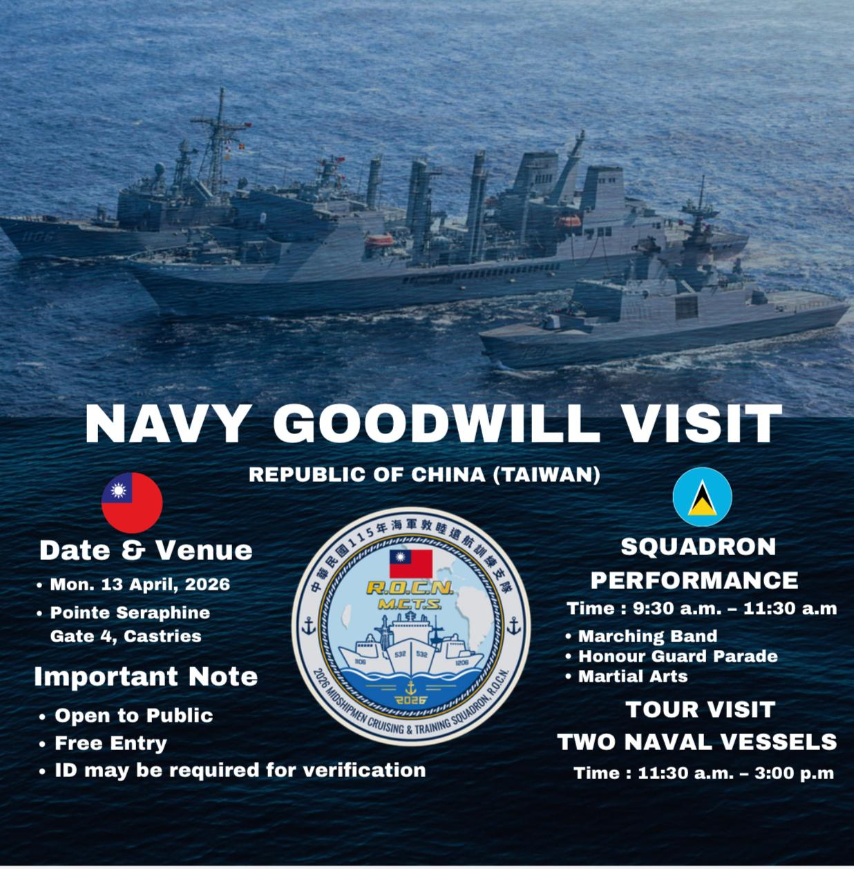 Thank you for the invitation from the Government of Saint Lucia! For the first time ever, the Republic of China (Taiwan) Navy will visit Saint Lucia — and you’re invited to be part of this special moment.
