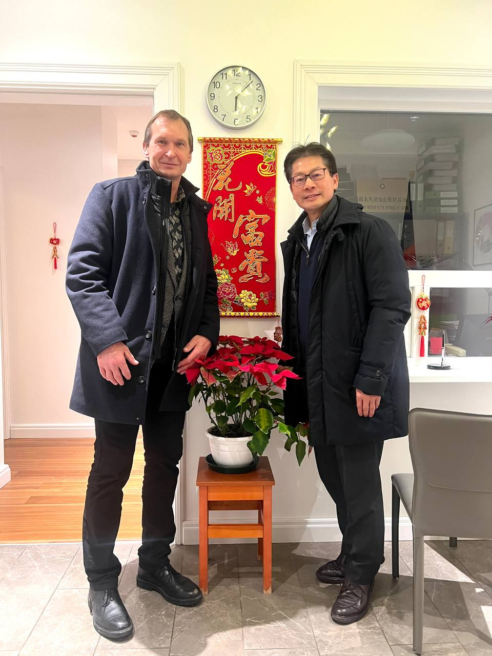 李大使感謝楊森議員專程來訪,並祝福他蛇年順心愉快、圓滿豐收。