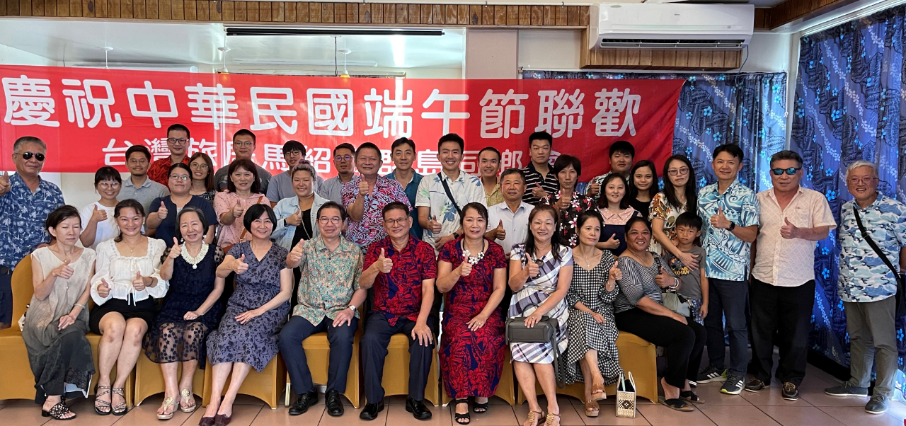 除了豐盛美饌外,本年度本館援例與台鄉會合作,採購進口自台灣的粽子在餐會中分送僑胞,與鄉親們一同回味台灣傳統滋味。餐會在眾人熱絡的祝福聲中結束,馬紹爾群島雖地處太平洋中心,來自台灣的人情味和粽子香,一樣也不少。
