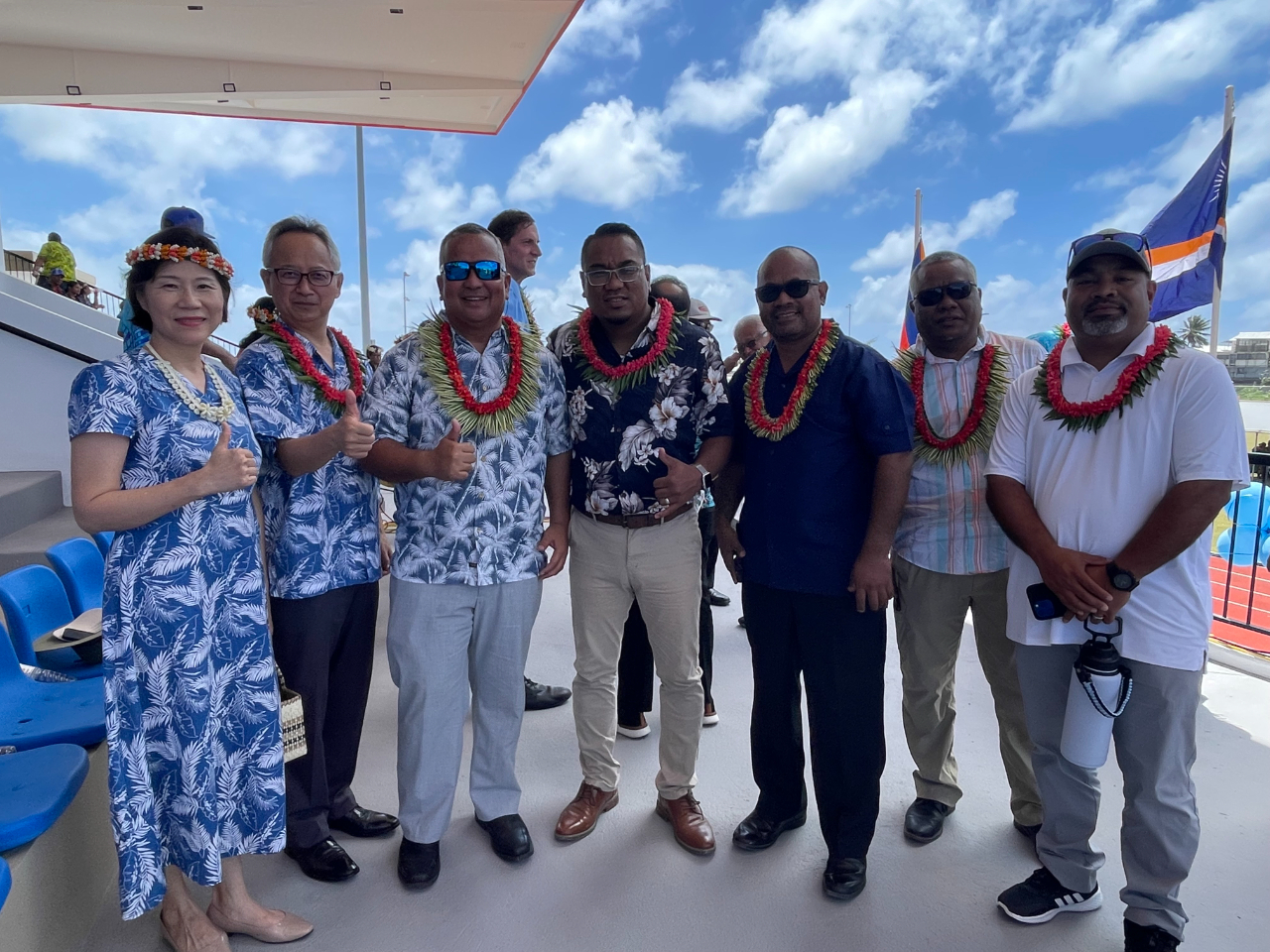 夏大使隨後祝賀馬國順利完成當前密克羅尼西亞地區最「吸睛」之田徑場工程,並向來賓們說明了,我國國際合作發展基金會對興建田徑場之協助,以及我政府援款建造多功能球場,希望能夠造福馬久羅環礁社區居民。 夏大使最後也期勉了馬國運動員於即將來臨之「密克羅尼西亞運動會」中大放異彩獲取佳績。