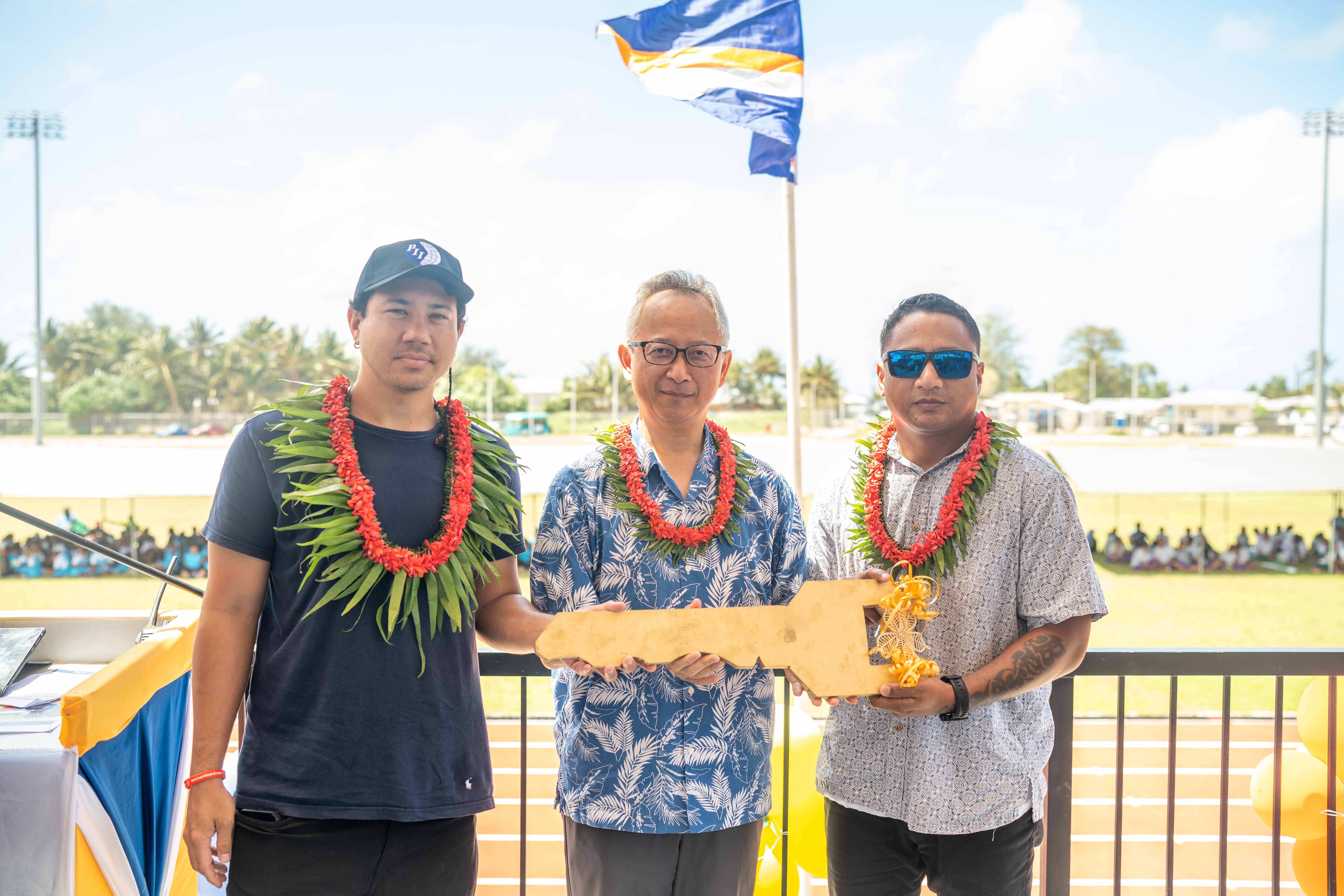 本館夏季昌大使夫婦於2月23日應邀出席馬國馬久羅日開幕儀式暨我國援建之田徑場以及社區多功能球場移交典禮,與工程承包商PII公司代表Jojo Kramer將象徵性金鑰交給了馬國教育、訓練暨體育部長貝將(Joe Bejang)並完成剪綵,為台灣協助友邦基礎建設再創新里程碑。