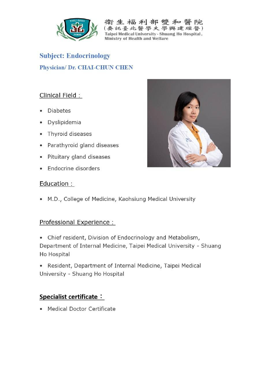專科:新陳代謝科(內分泌) 診療項目: ●糖尿病 ●血脂異常 ●甲狀腺疾病 ●各類內分泌疾病 ●甲狀腺超音波檢查