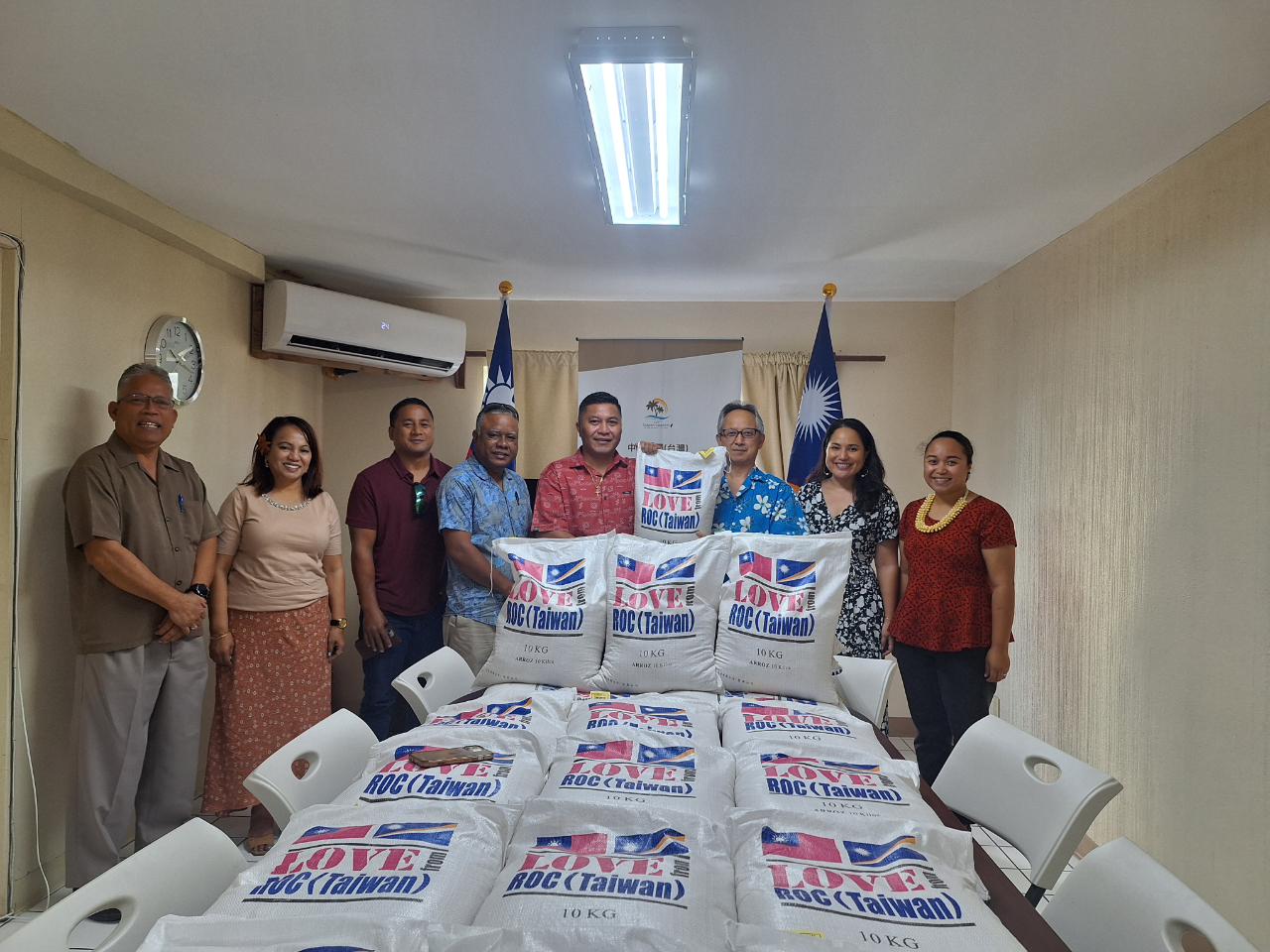 駐馬紹爾群島共和國夏季昌大使今(12)日代表中華民國(台灣)政府,正式捐贈40噸白米予馬紹爾群島政府,總價值達42,500美元,並協助負擔11,670美元的國際海運運費,展現台灣協助馬紹爾群島提升糧食安全的具體行動。